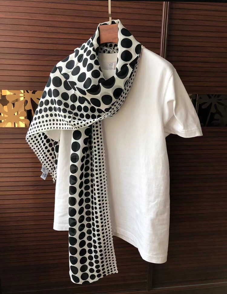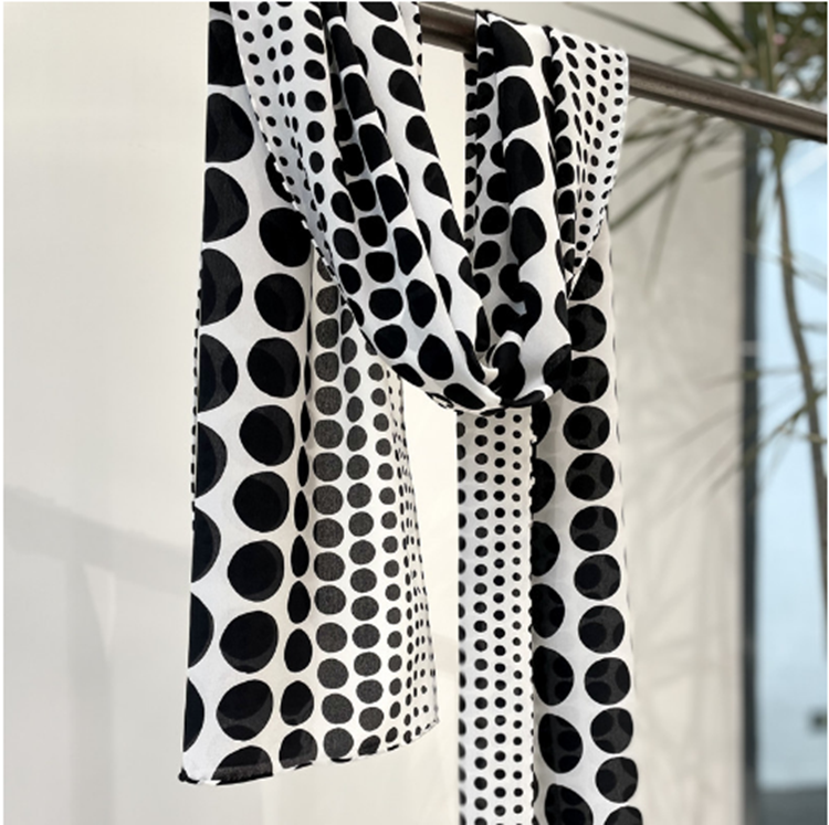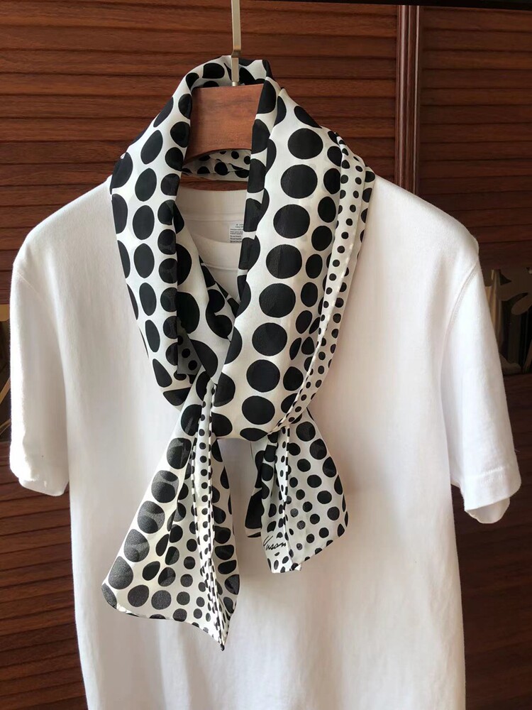 📚 优顺锦双绉手卷真丝丝巾女长条波点桑蚕丝围巾领黑白圆圈点点经典