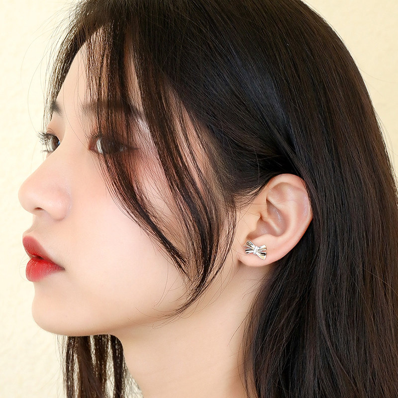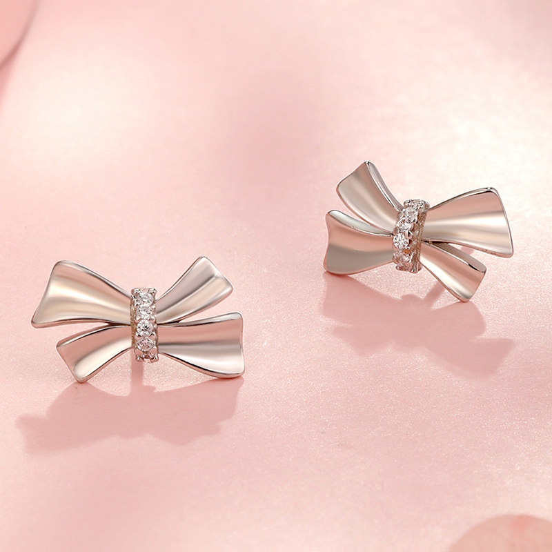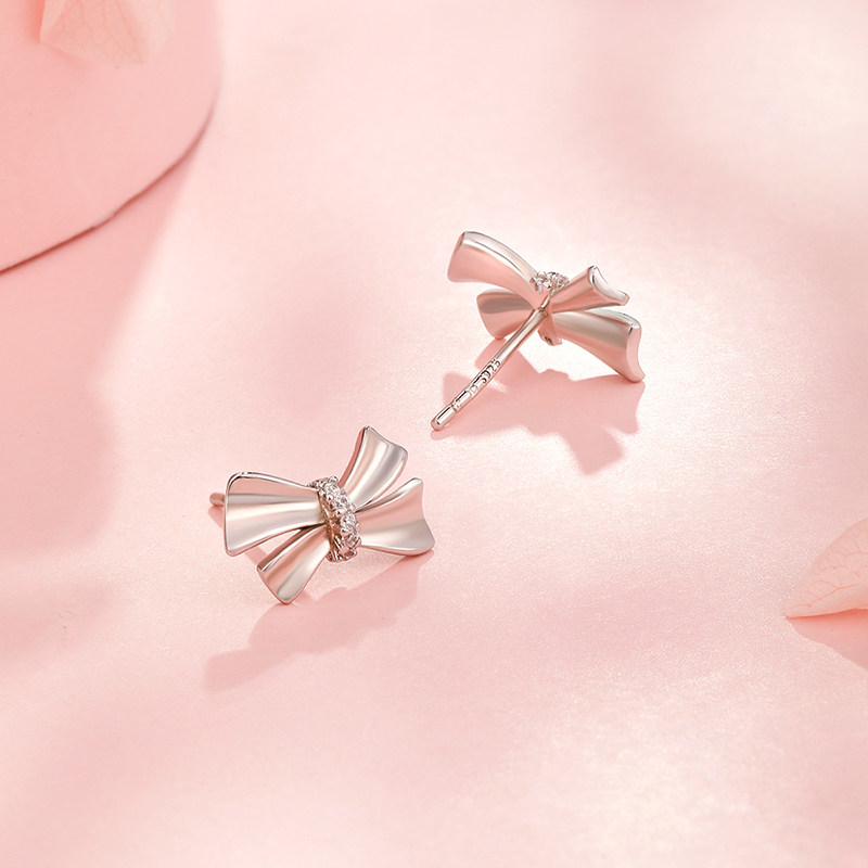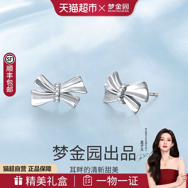 📚 梦金园纯银耳钉S925银耳饰闪耀蝴蝶结少女银首饰女士生日礼物一对