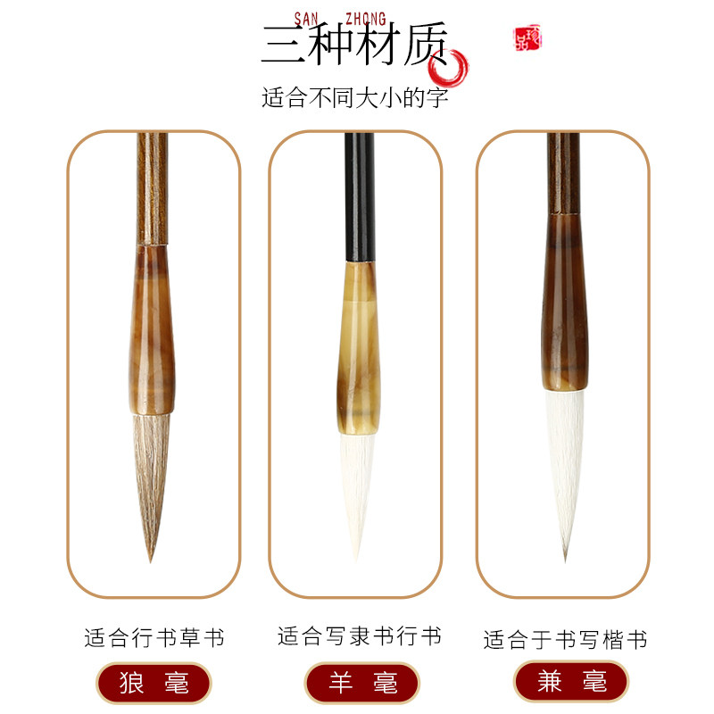 📚 毛笔狼毫兼毫羊毫套装大中小楷成人学生初学书法专用毛笔隶书国画