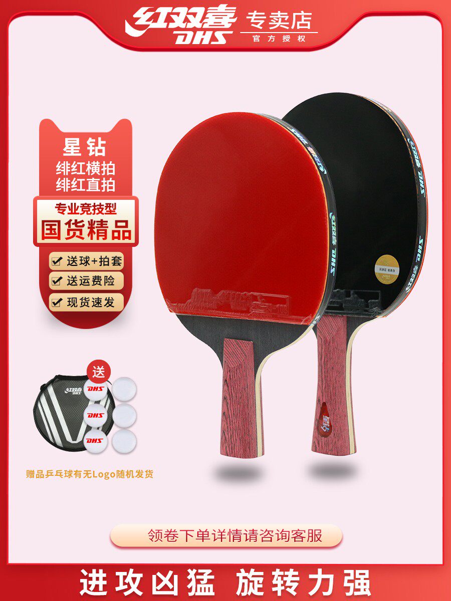 📚 红双喜星钻乒乓球拍红绯黑耀专业狂飙3训练比赛横拍学生考试直拍