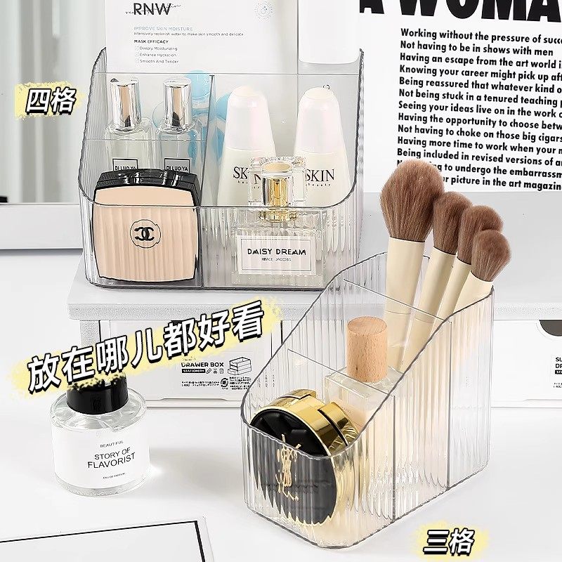 📚 透明收纳盒化妆品整理盒桌面口红化妆刷护肤品笔筒化妆盒置物架