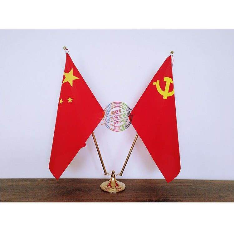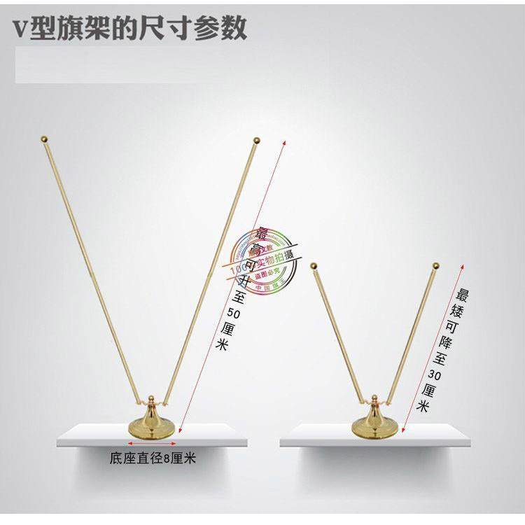 📚 金色V型伸缩办公桌旗座台式国旗摆件小红旗双杆桌面上国旗党旗架
