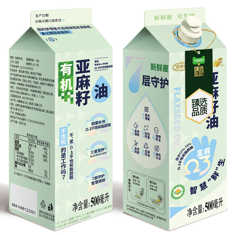 📚 臻选福临门有机亚麻籽油500mL营养家低温
