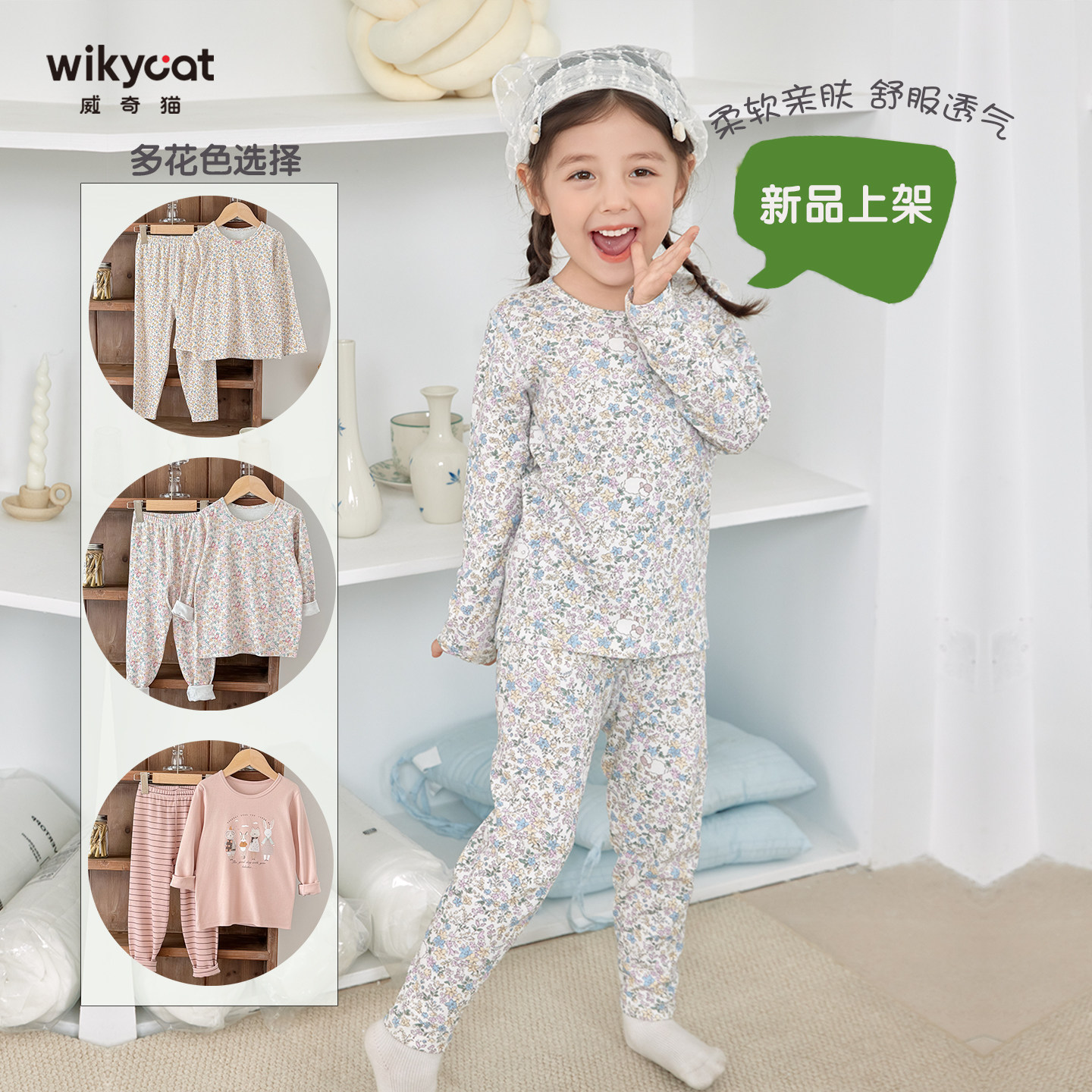 📚 威奇猫230克儿童女童鹿皮绒倍柔棉内衣内裤套装秋衣秋裤线衣线裤