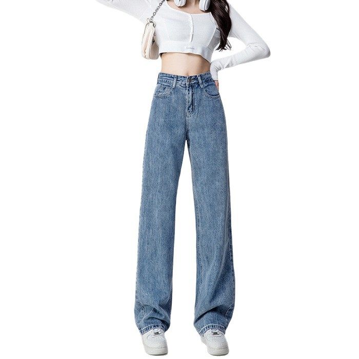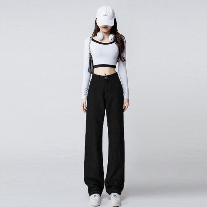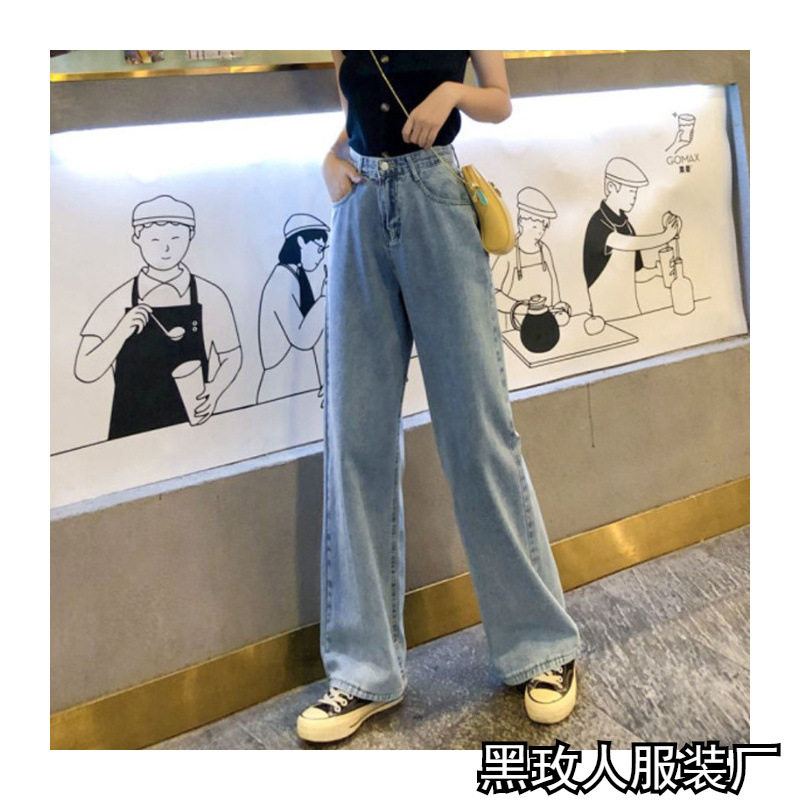 📚 American washed denim jeans for women复古牛仔长裤女阔腿