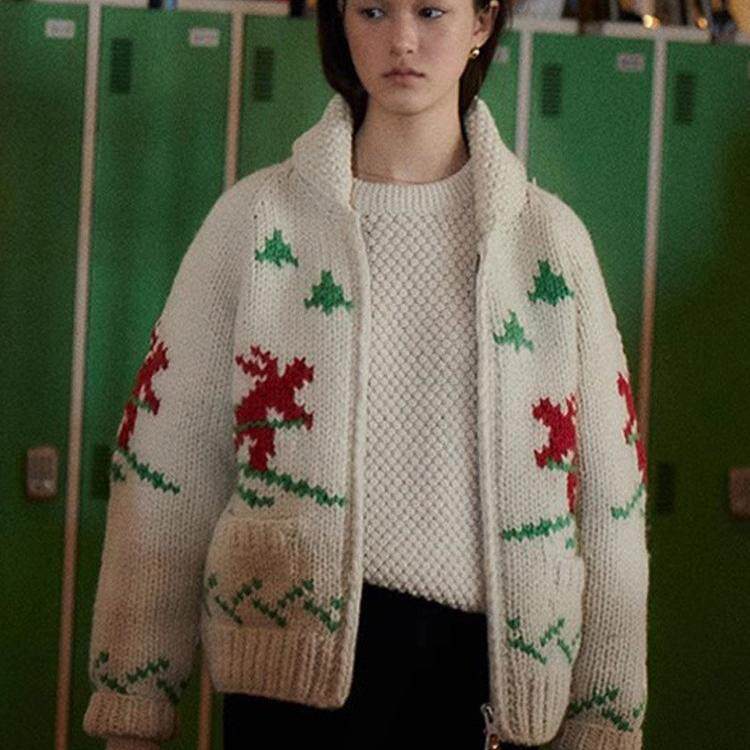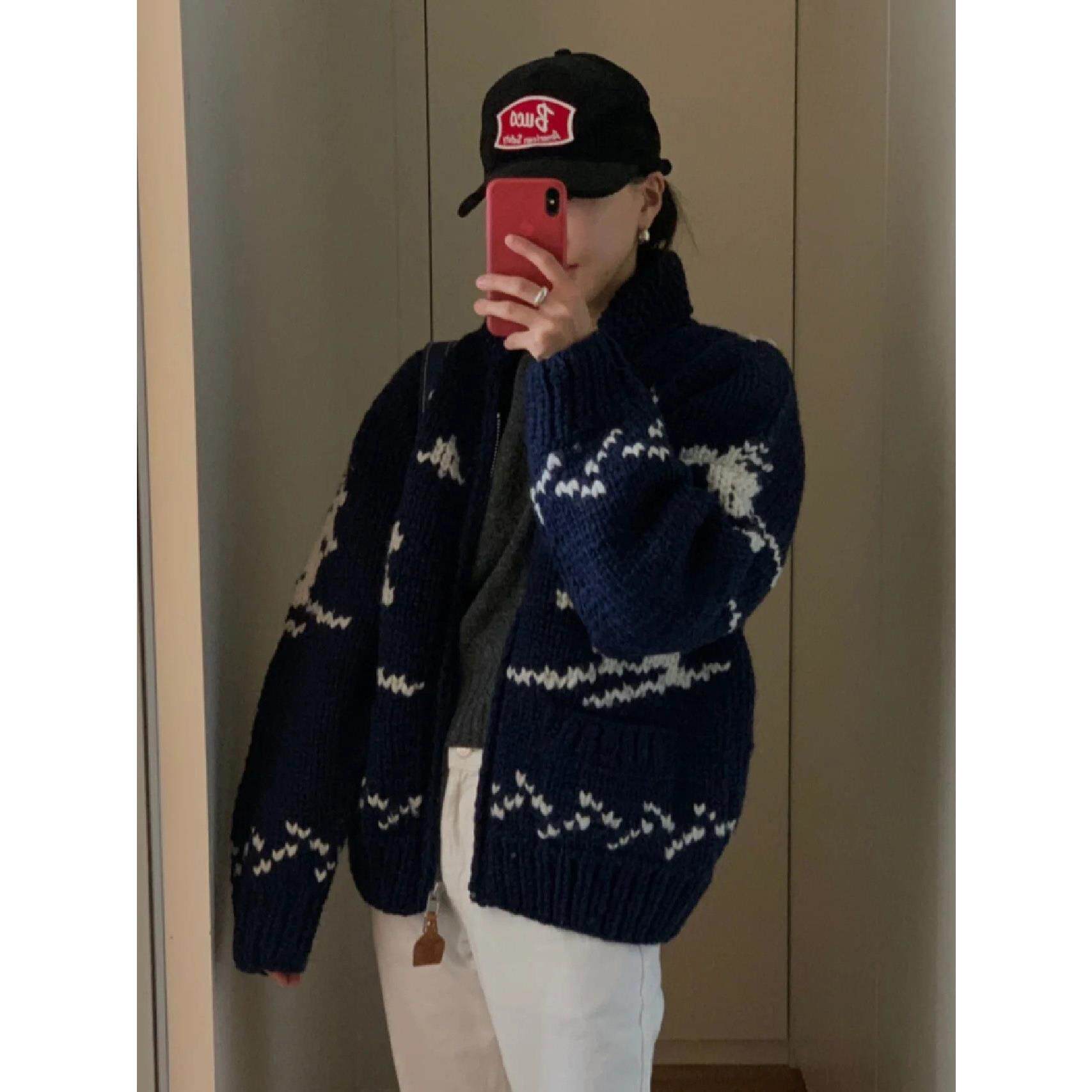 📚 【现货】urbanic30 滑雪毛衣fever同款手工羊毛拉链针织毛衣外套