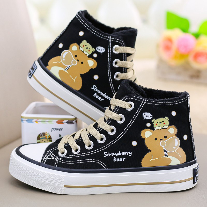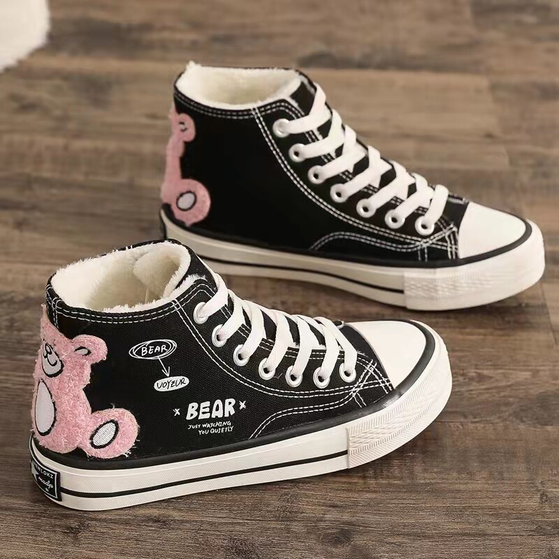 📚 高帮加绒帆布鞋女2025冬季新款百搭学生鞋防滑软底保暖加厚大棉鞋