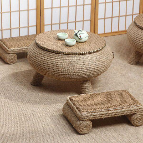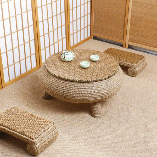 📚 麻绳榻榻米茶几炕几阳台地台小茶几飘窗桌中式家用圆形矮茶几炕桌