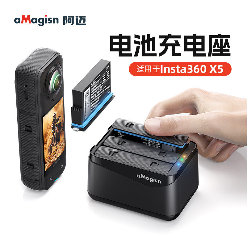 📚 aMagisn阿迈Insta360 X5电池充电器影石X5电池充电座收纳仓配件