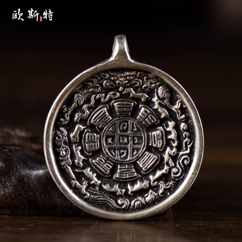 📚 九宫八卦牌 西藏古代铜锥尼泊尔手工做旧老物件吊坠挂件 吊牌腰牌