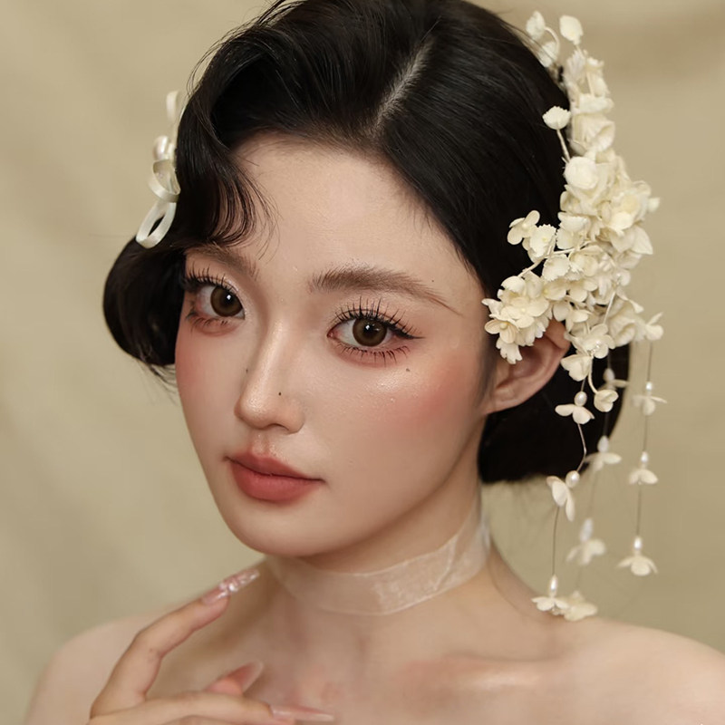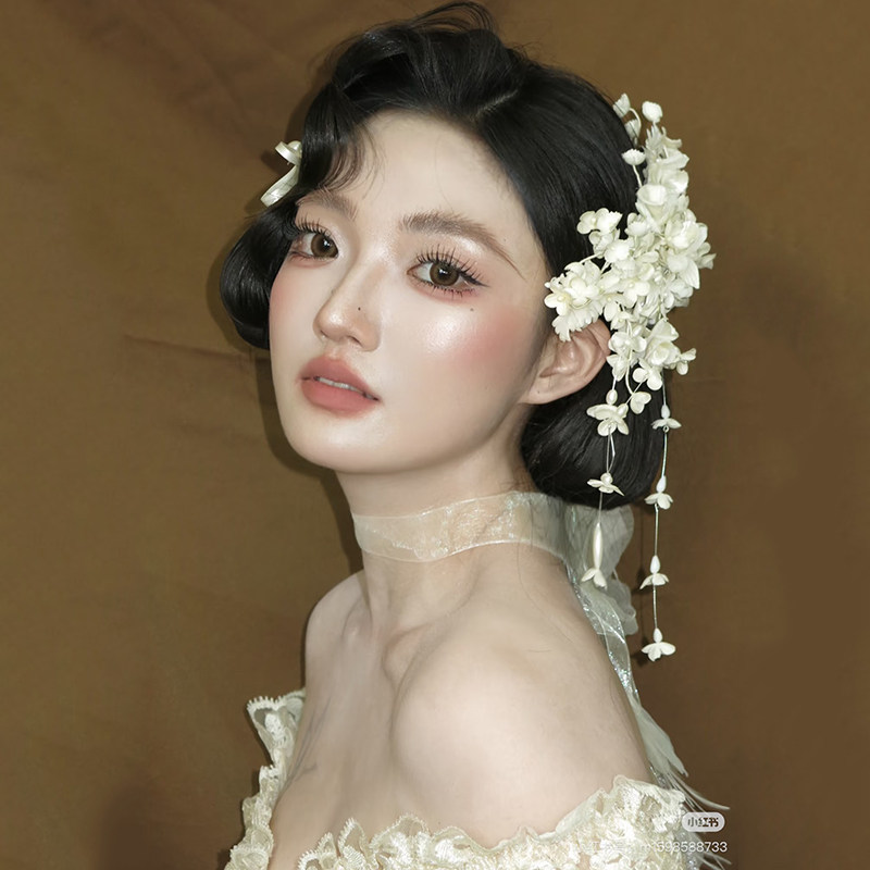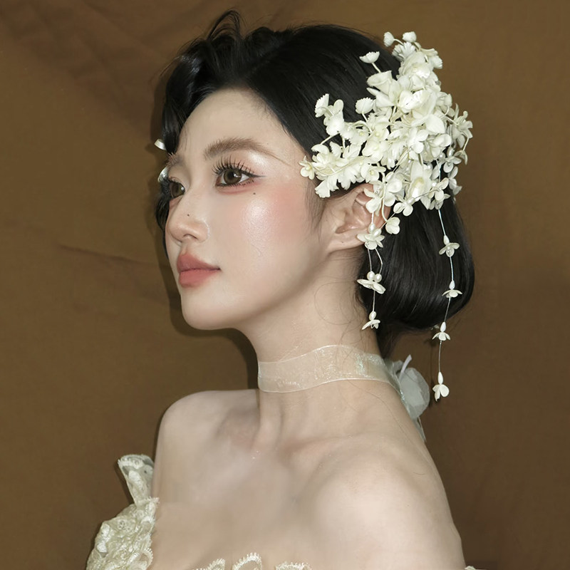 📚 新款铃兰花头饰花朵流苏发夹女森系新娘结婚发饰婚纱盘发配饰