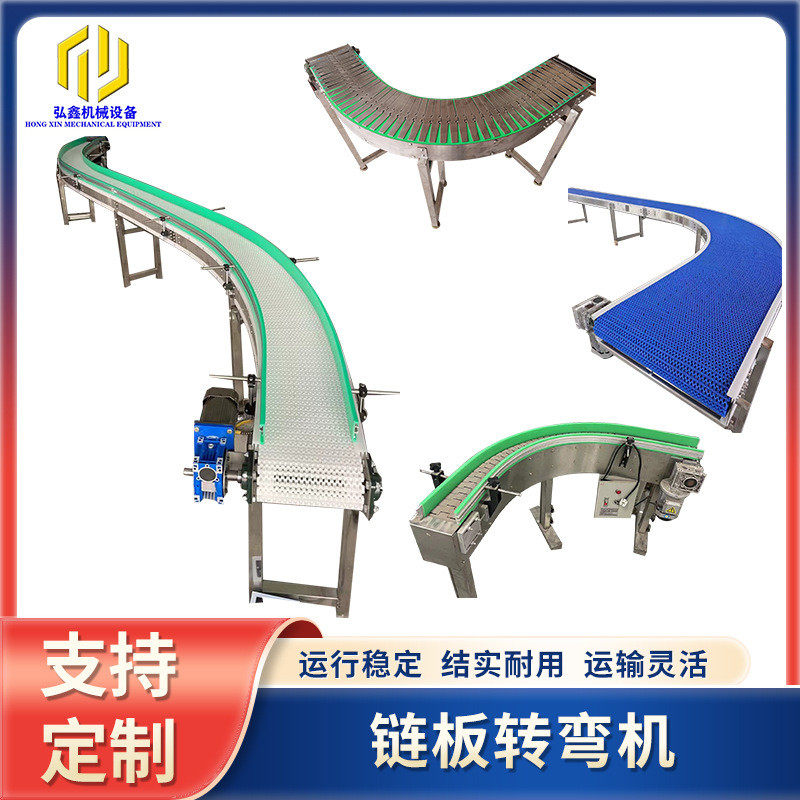 📚 不锈钢平顶链板传送带输送机塑胶网带90度180度柔性链板环形转弯