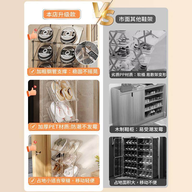📚 入户门小窄夹缝鞋柜轻奢高透鞋架倾斜多层简易家用门口鞋子收纳架