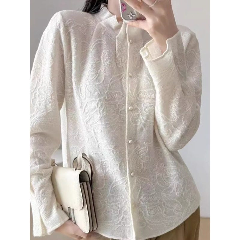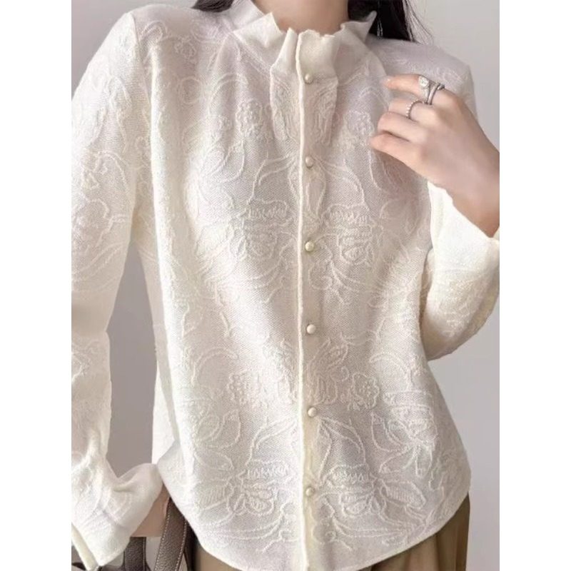 💥种草!高级气质白色立领提花毛衣,券后价69.9,精致珍珠扣褶皱开衫针织衫衬衫,让你成为精致女神👸