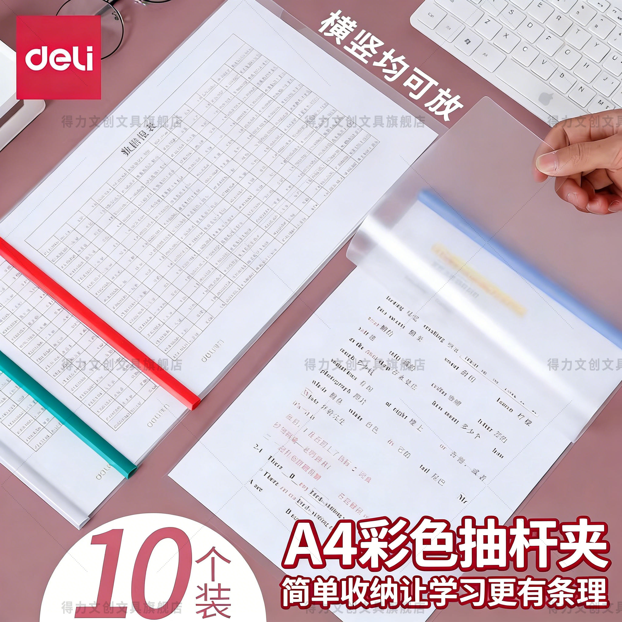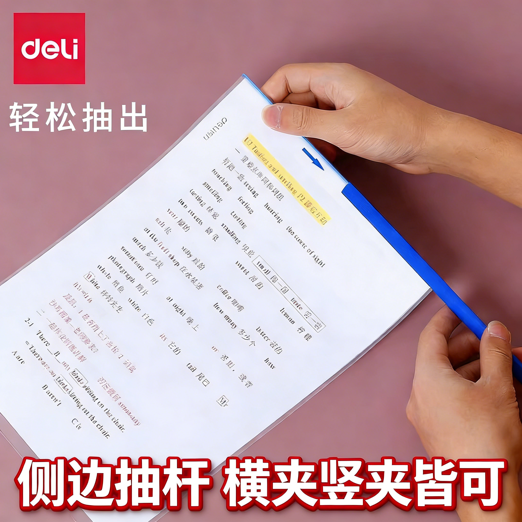 📚 得力抽杆夹横版文件夹本夹子a4活页夹拉杆夹横向档案夹大容量A3大号透明抽拉杆资料夹试卷夹简历报告夹书皮夹