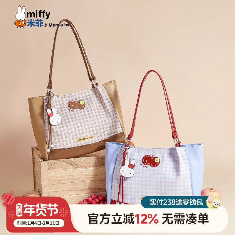 📚 米菲格子纹冬季托特包包2026新款女式大容量百搭单肩包通勤上课包