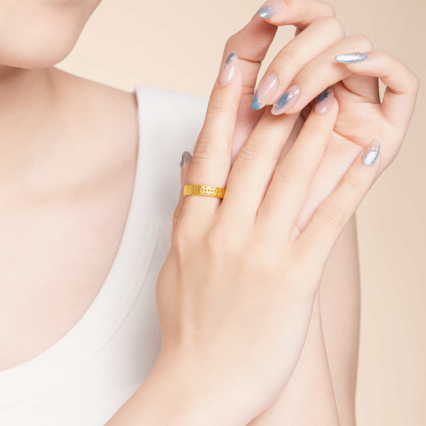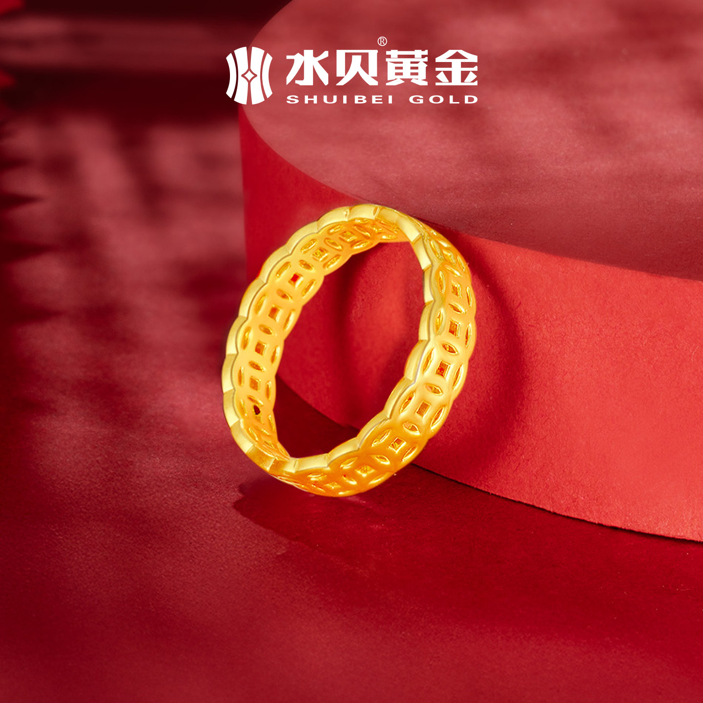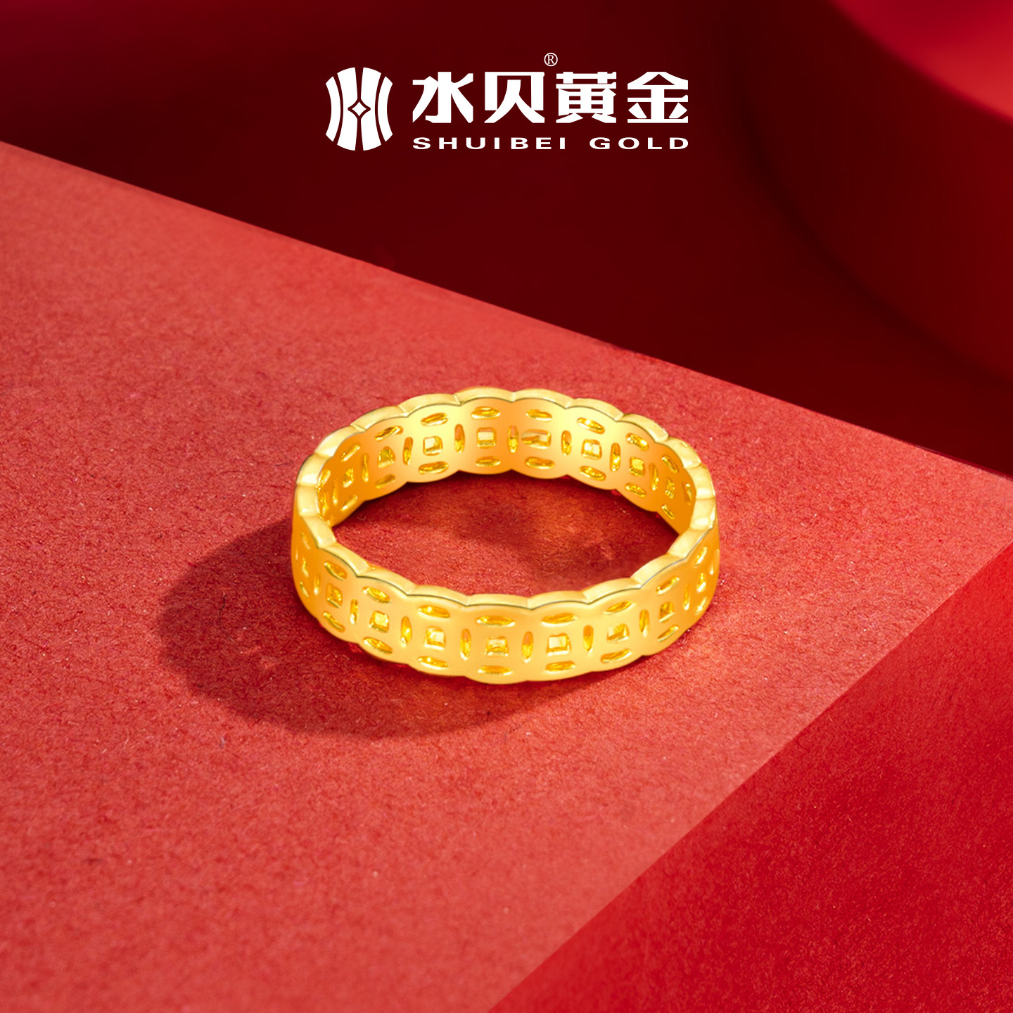 📚 水贝黄金官方旗舰店足金999铜钱币戒指纯金钱多多情侣小克重礼物