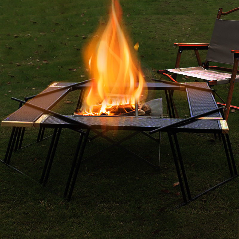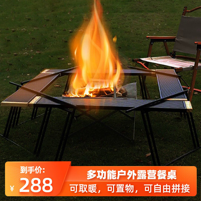 📚 户外围炉桌子篝火围桌煮茶折叠露营野餐台置物架便携装备用品烧烤