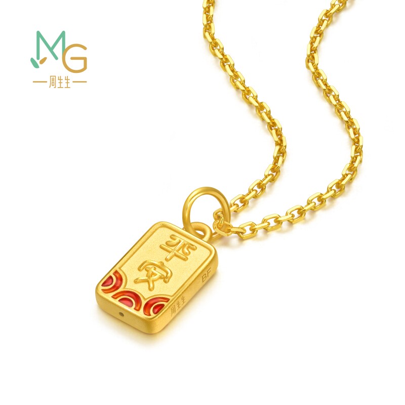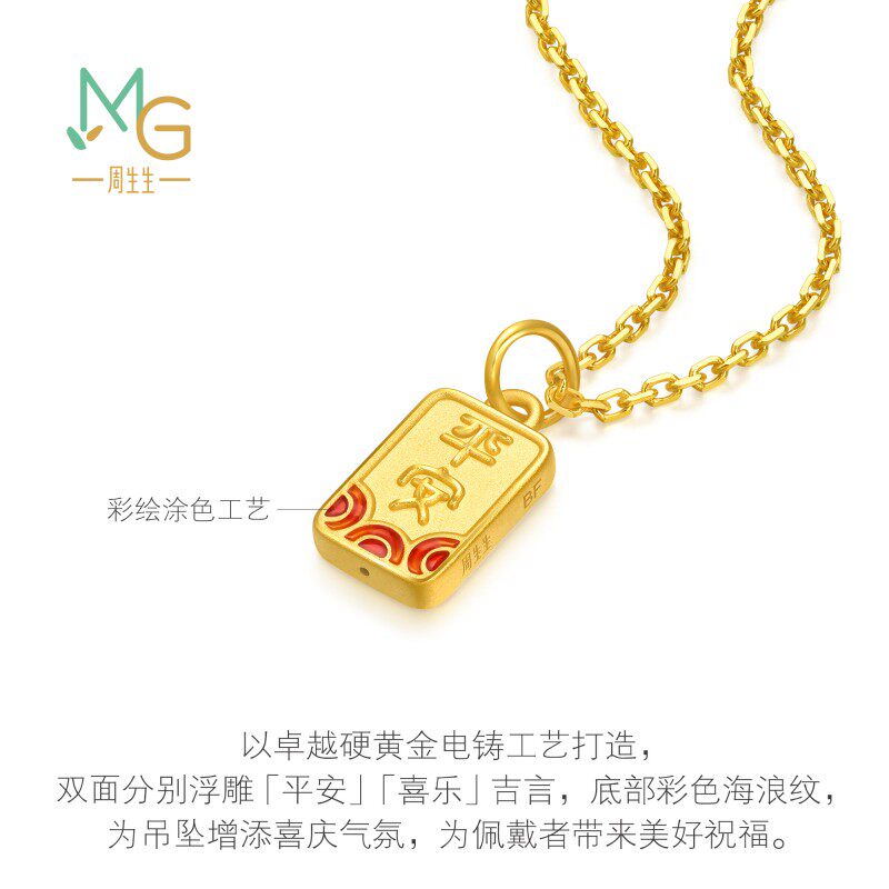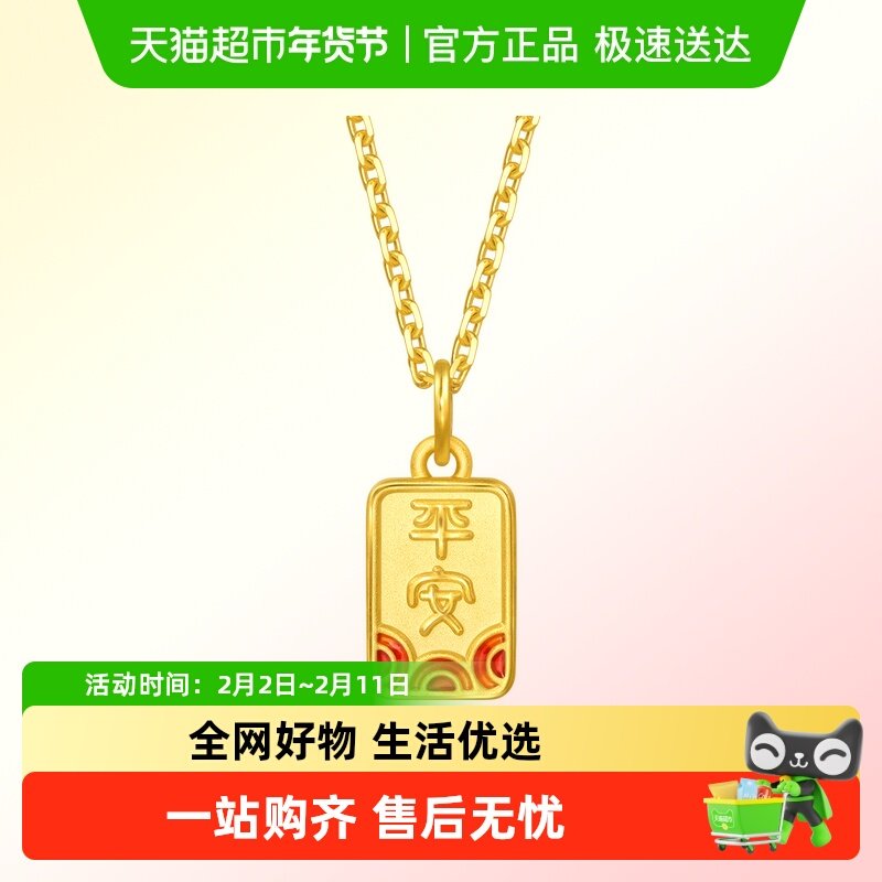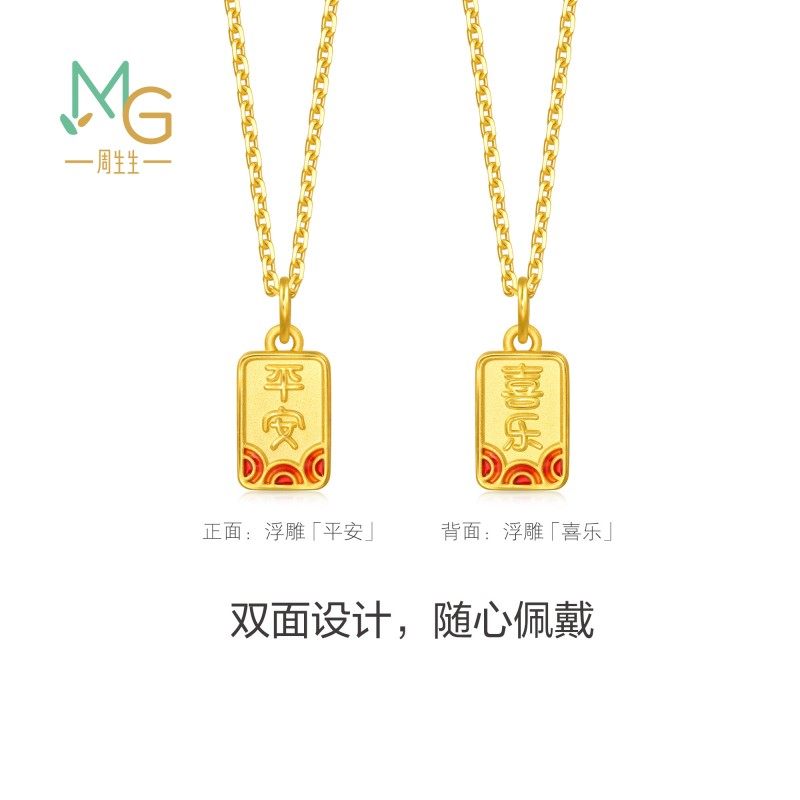 📚 周生生薄荷系列足金平安喜乐吊牌黄金吊坠mini小金牌挂坠96168P