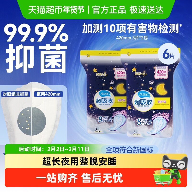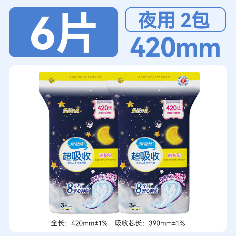 📚 【全项符合新国标】倍舒特卫生巾女夜用亲肤棉柔防漏姨妈巾420mm