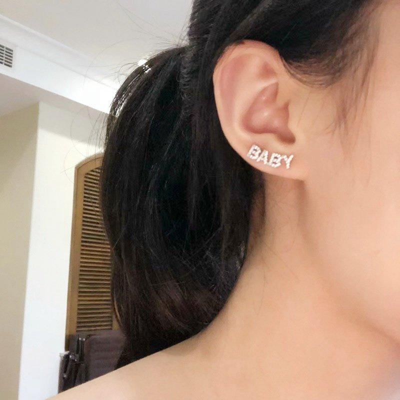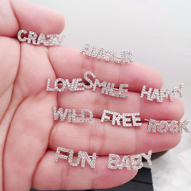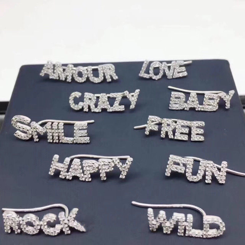 📚 S925银白色HAPPY满钻单边个性耳钉女 简约时尚左右各边耳饰小礼物