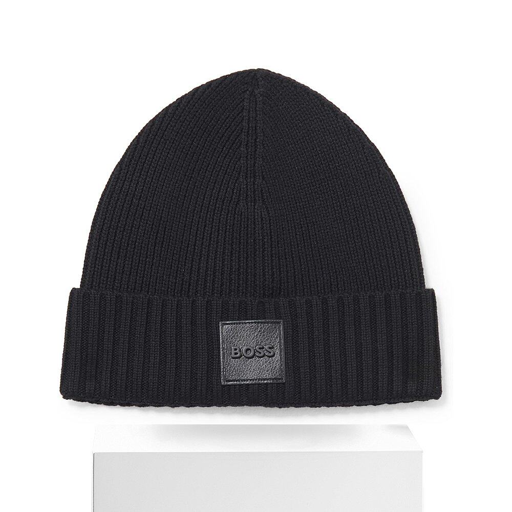 📚 自营 Hugo Boss Men's Flavio Ribbed Beanie, Black - black 美