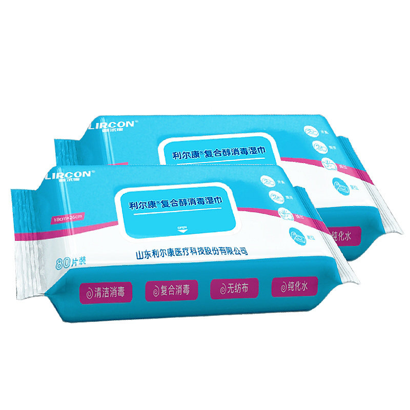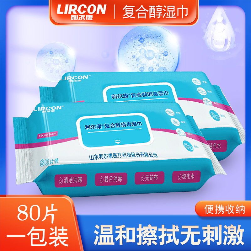📚 利尔康一次性使用消毒湿巾复合醇酒精湿巾80抽医用家用皮肤清洁片