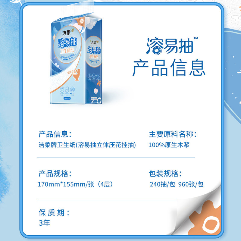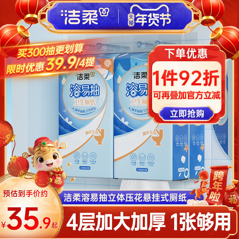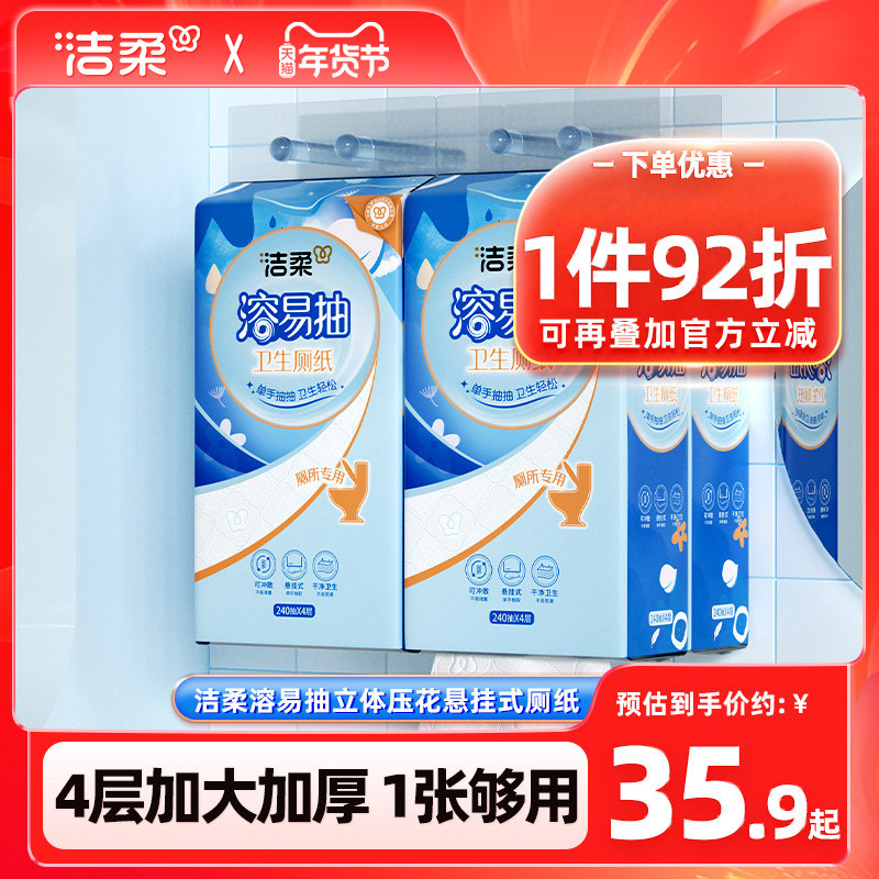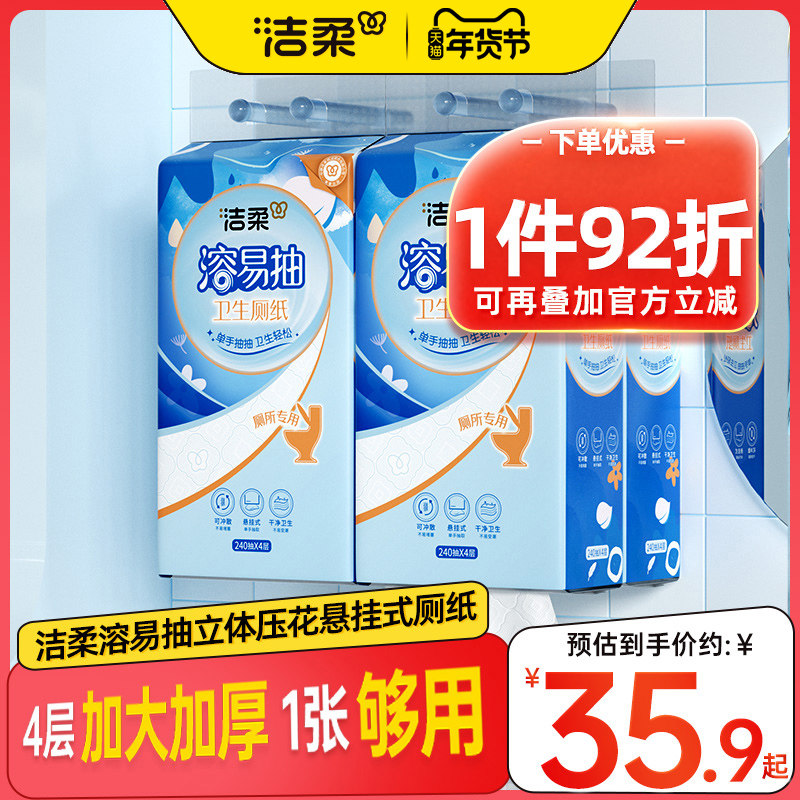 📚 洁柔溶易抽立体压花悬挂式卫生厚厕纸加大纸巾厕所专用可溶性抽纸