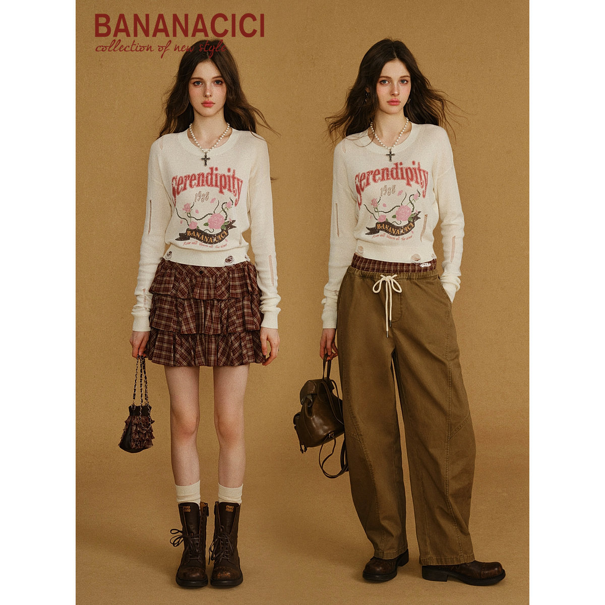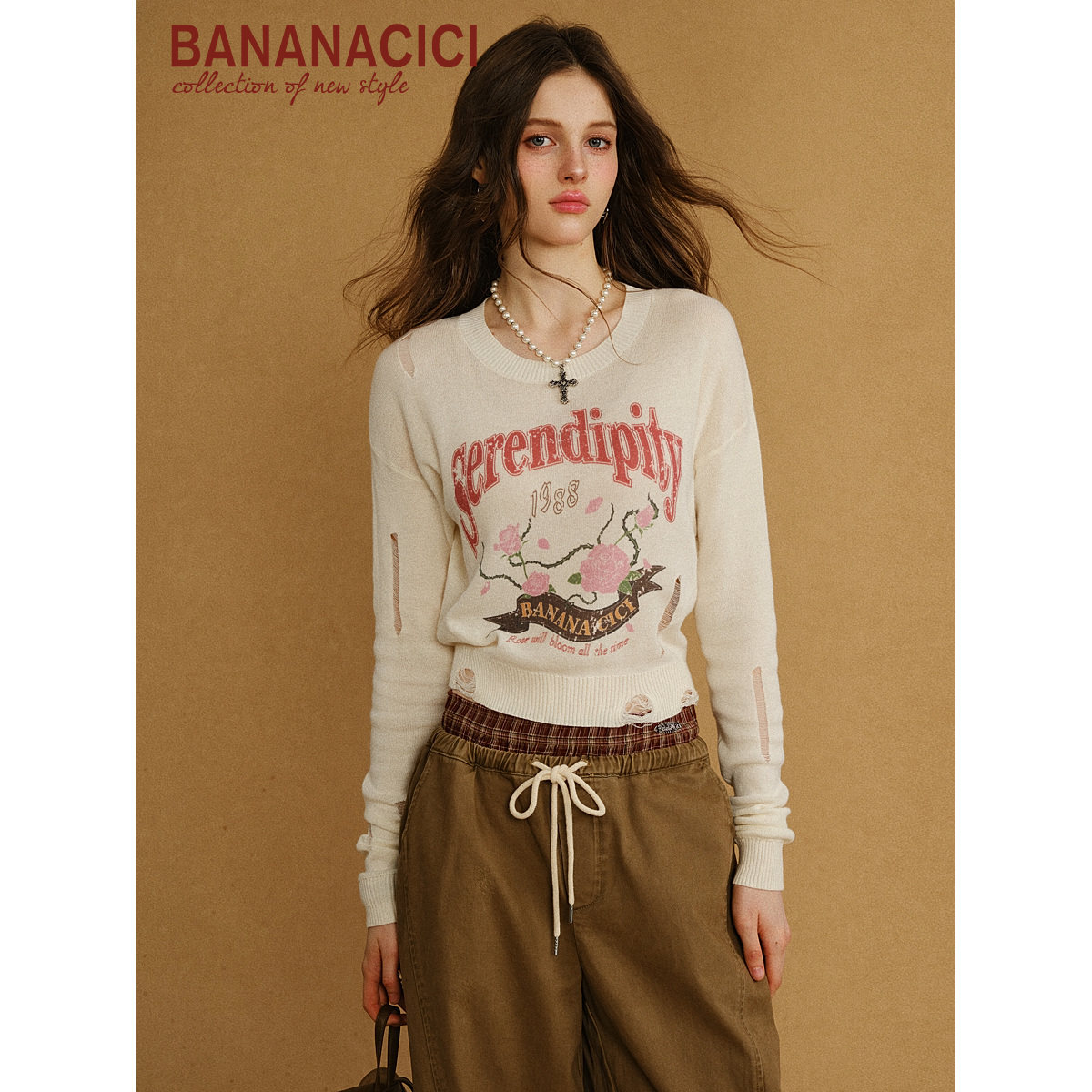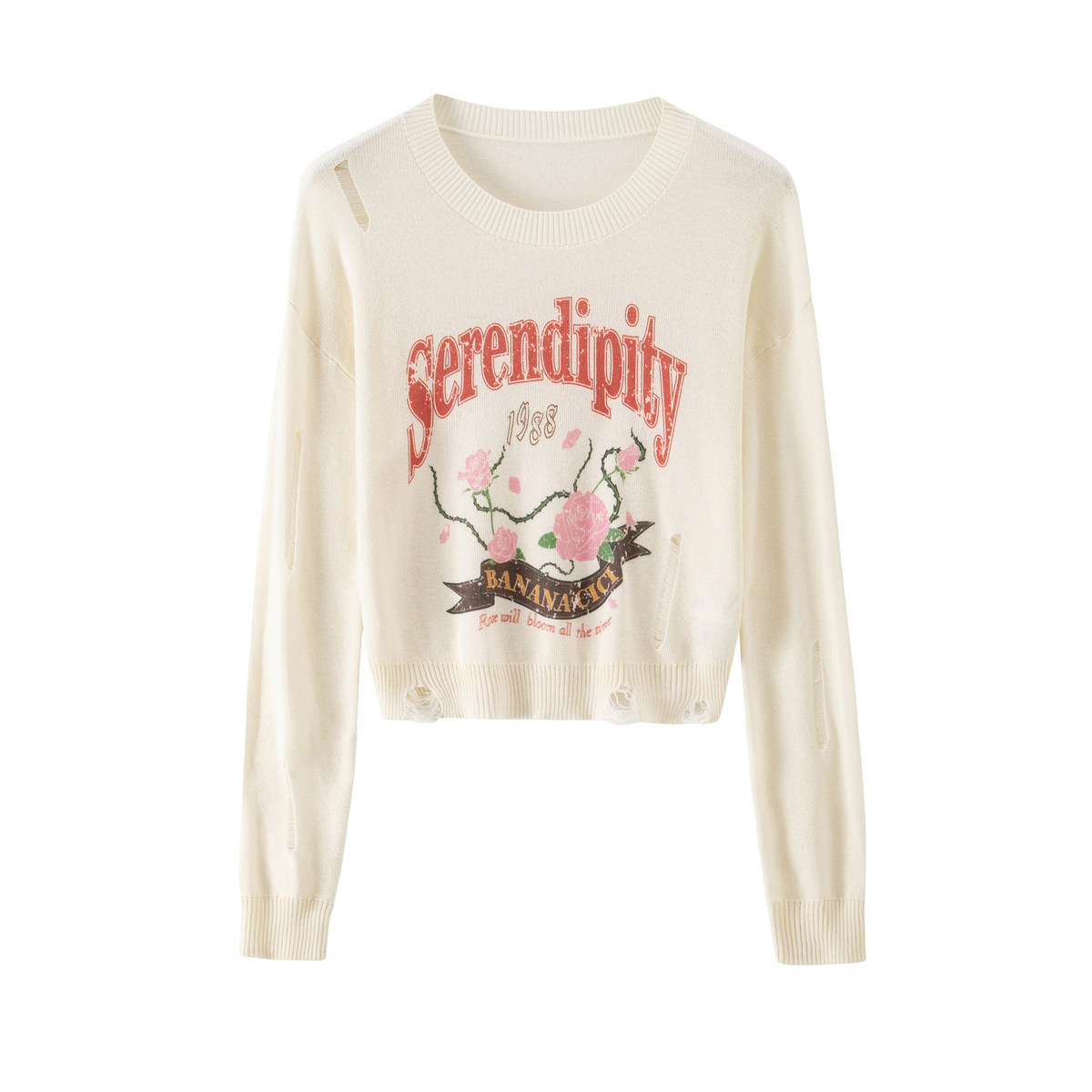 📚 【孙雪宁同款】BANANA CICI2025年秋冬新款复古玫瑰印花针织衫