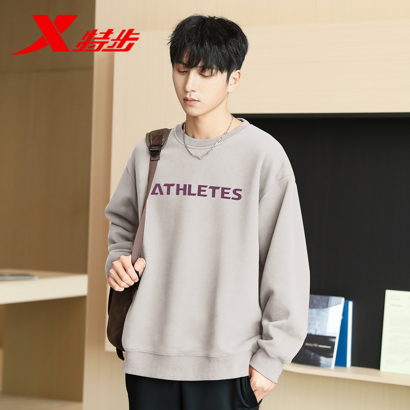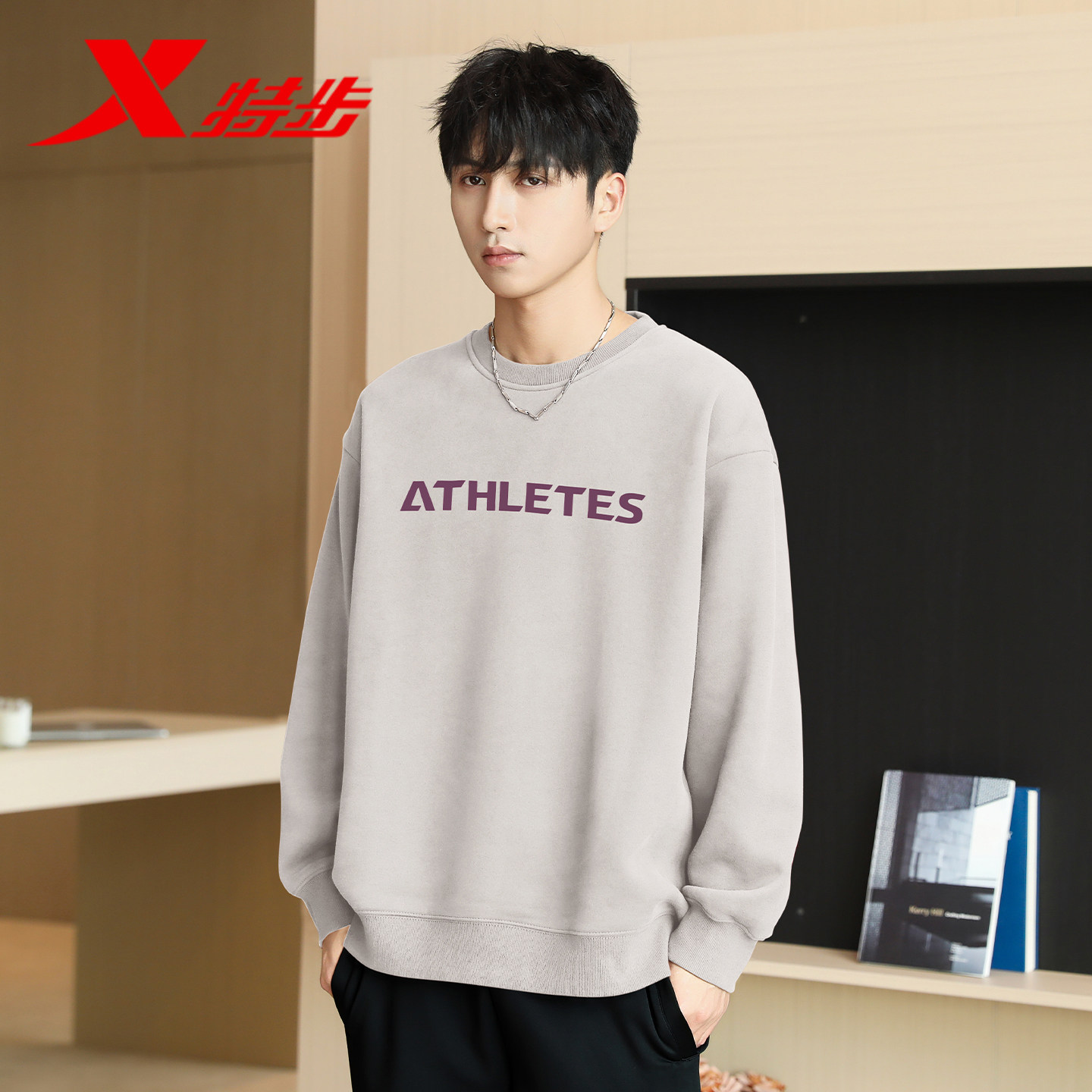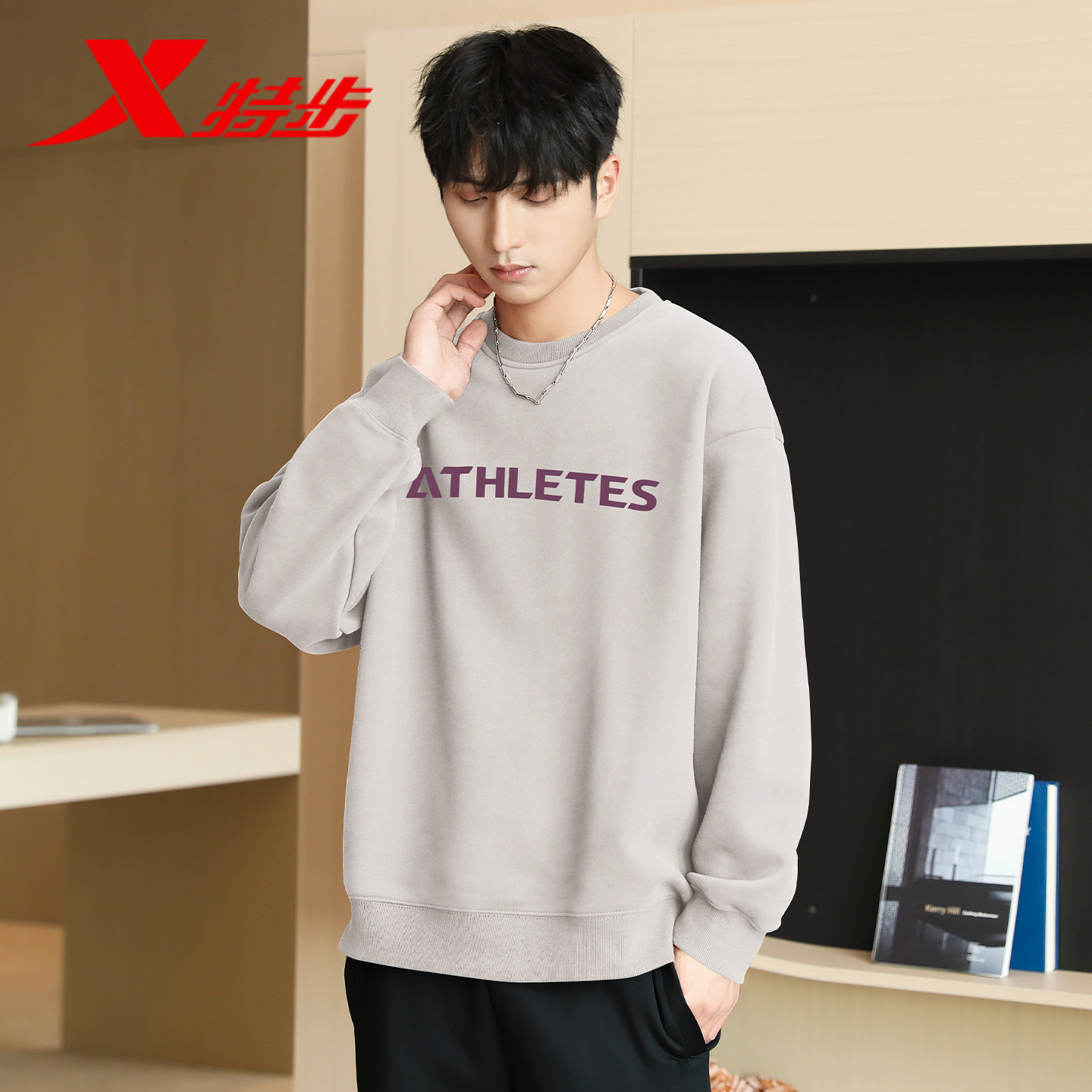 📚 特步卫衣男冬季新款高级感上衣宽松运动休闲百搭长袖圆领套头衫男