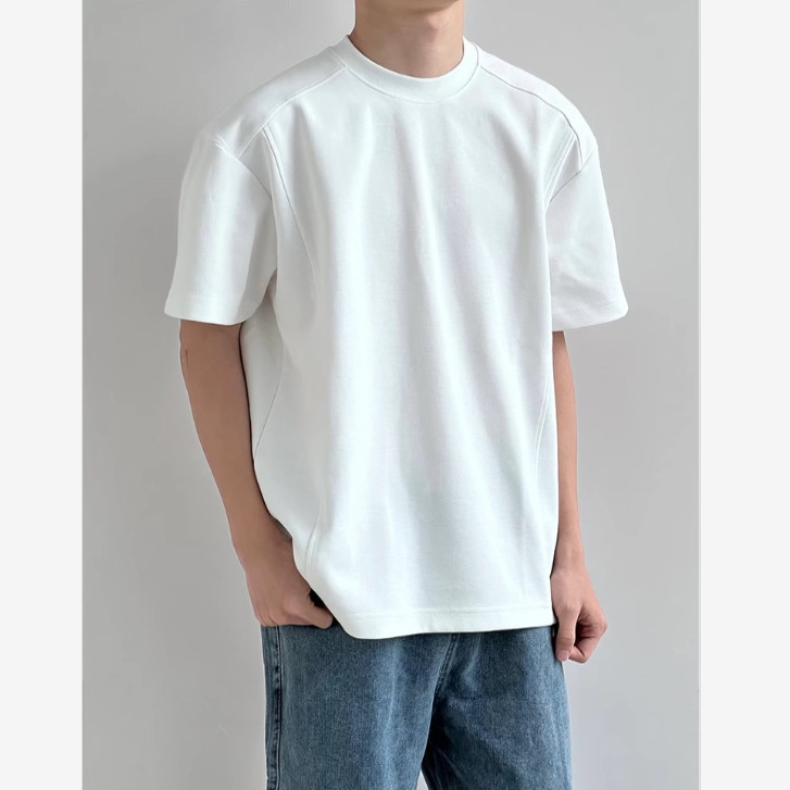 📚 美式复古300G重磅纯棉短袖T恤男宽松简约cleanfit打底上衣百搭潮