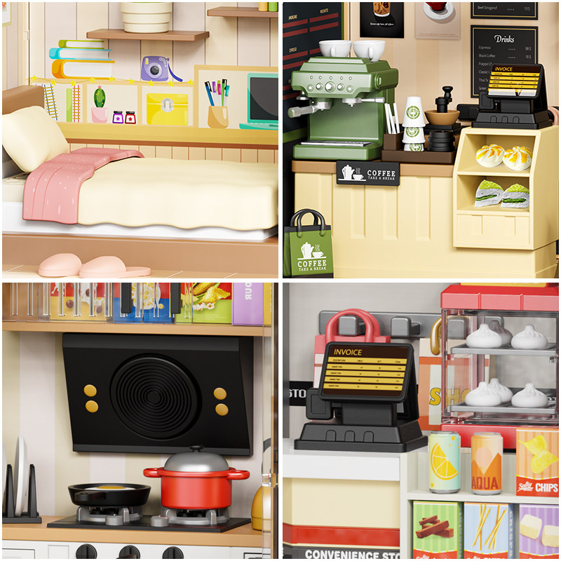 📚 妙趣空间积木手工拼装diy小屋玩具微缩生日礼物厨房模型儿童玩具