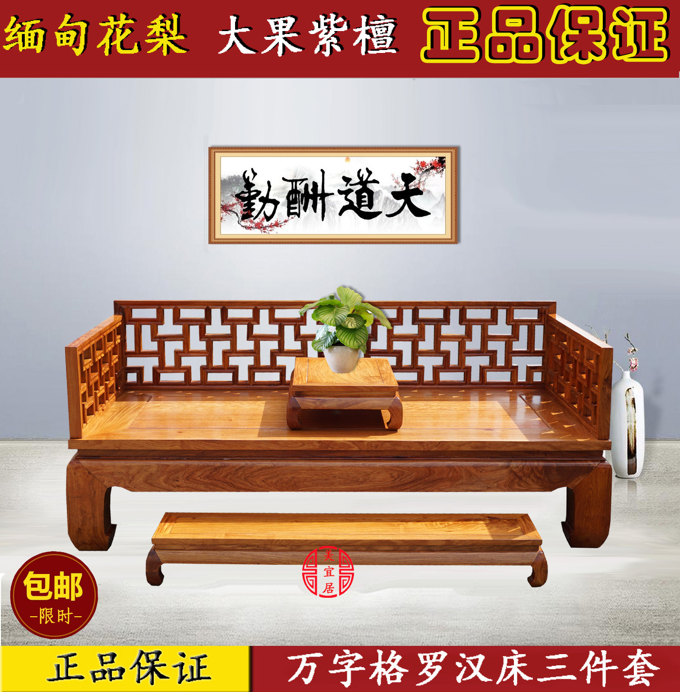 📚 红木家具 缅甸花梨木罗汉床睡榻中式明清沙发独板全榫大果紫檀木