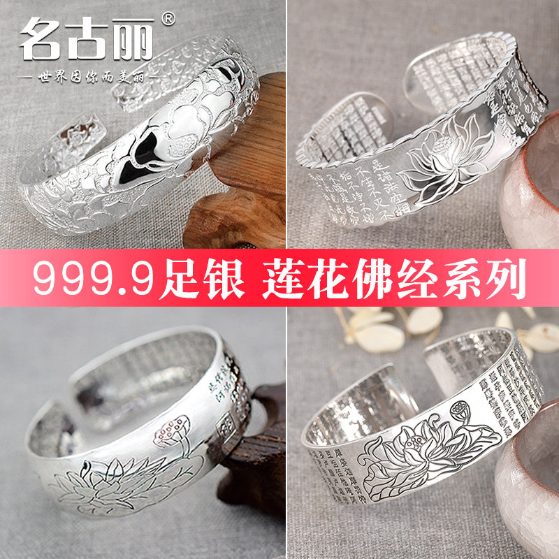 📚 以旧换新心经大悲咒9999纯银镯子莲花 999足银手镯女白银饰送妈妈