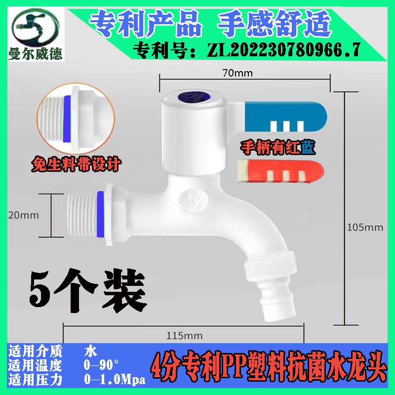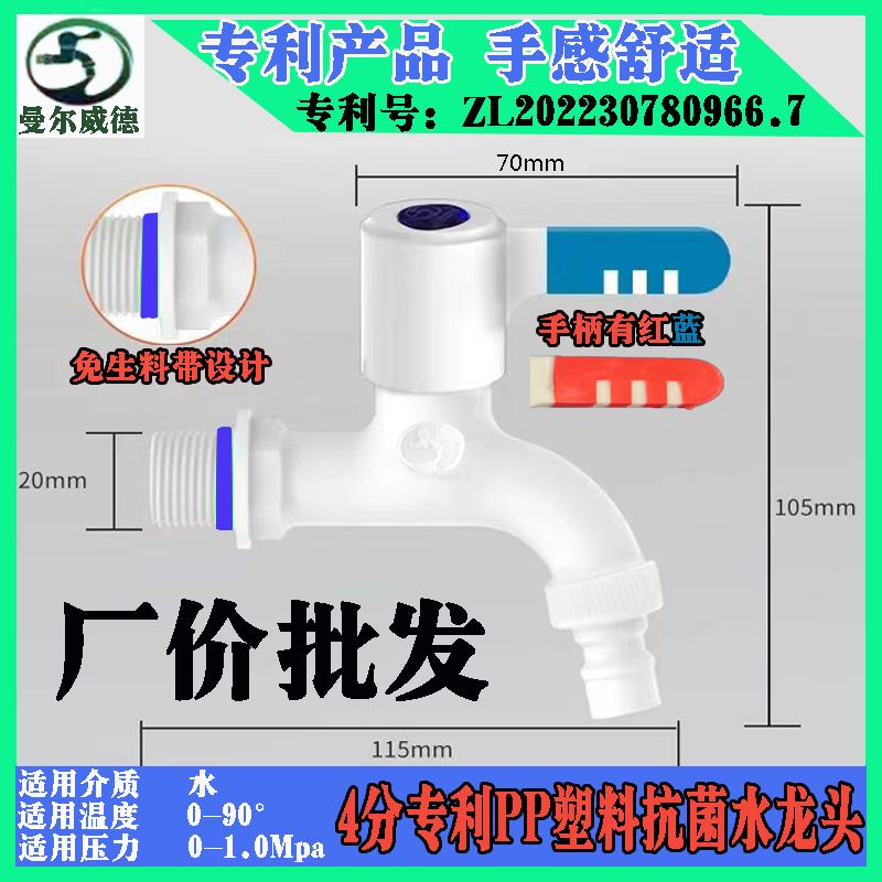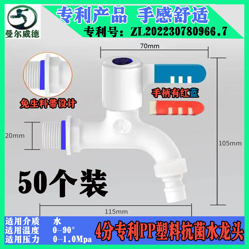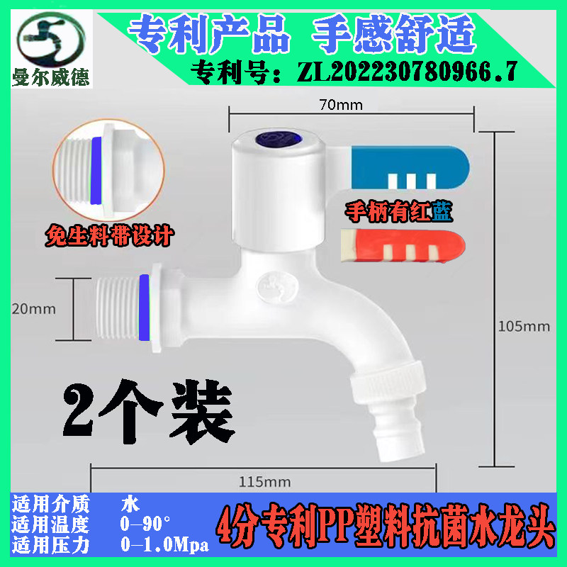 📚 抗菌塑料水龙头免生料带4分6分加长自来水开关家用曼尔威德牌