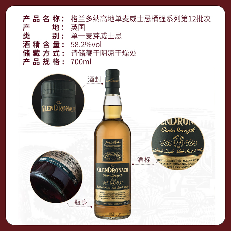 📚 格兰多纳桶强第12批次苏格兰高地单一麦芽威士忌700ml