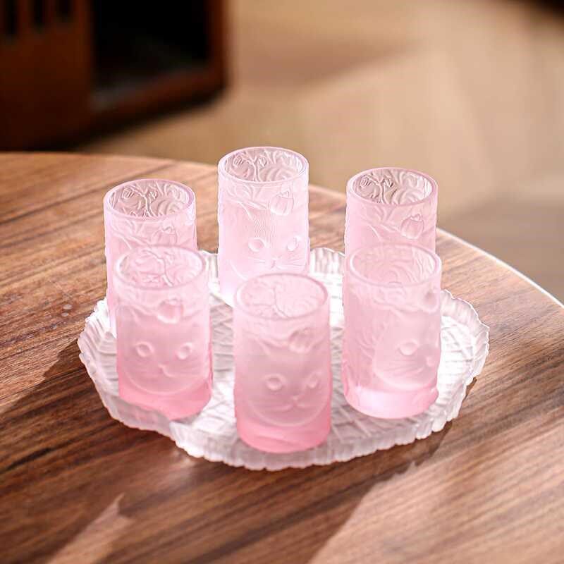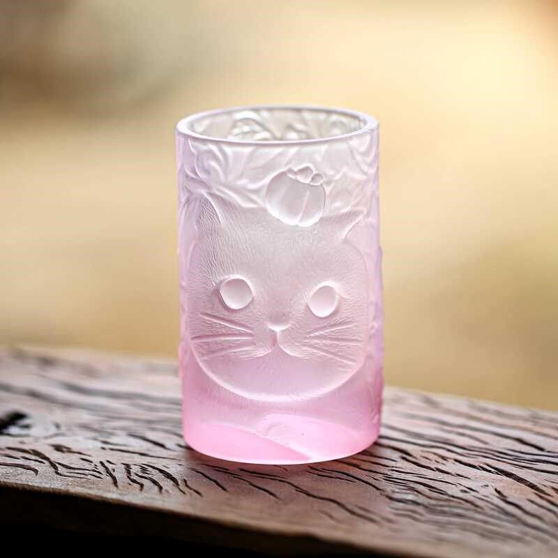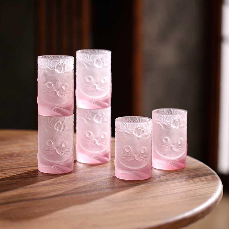 📚 玻璃杯子柿柿如意猫杯套装家用主人杯单杯创意茶杯酒杯可爱水杯子