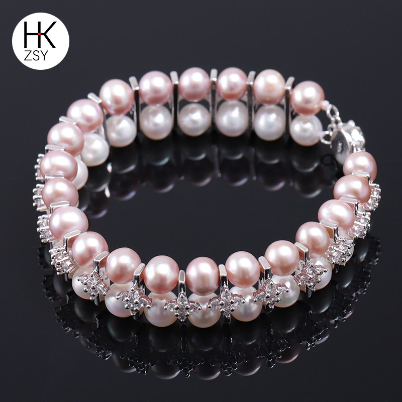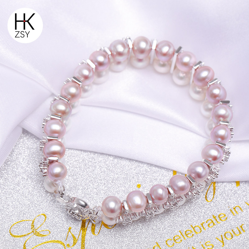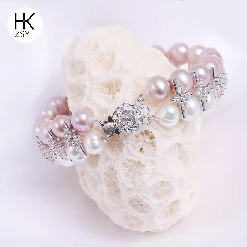 📚 珍世缘(珠宝)白紫双色银珍珠手链明星同款百搭高贵送女友闺蜜