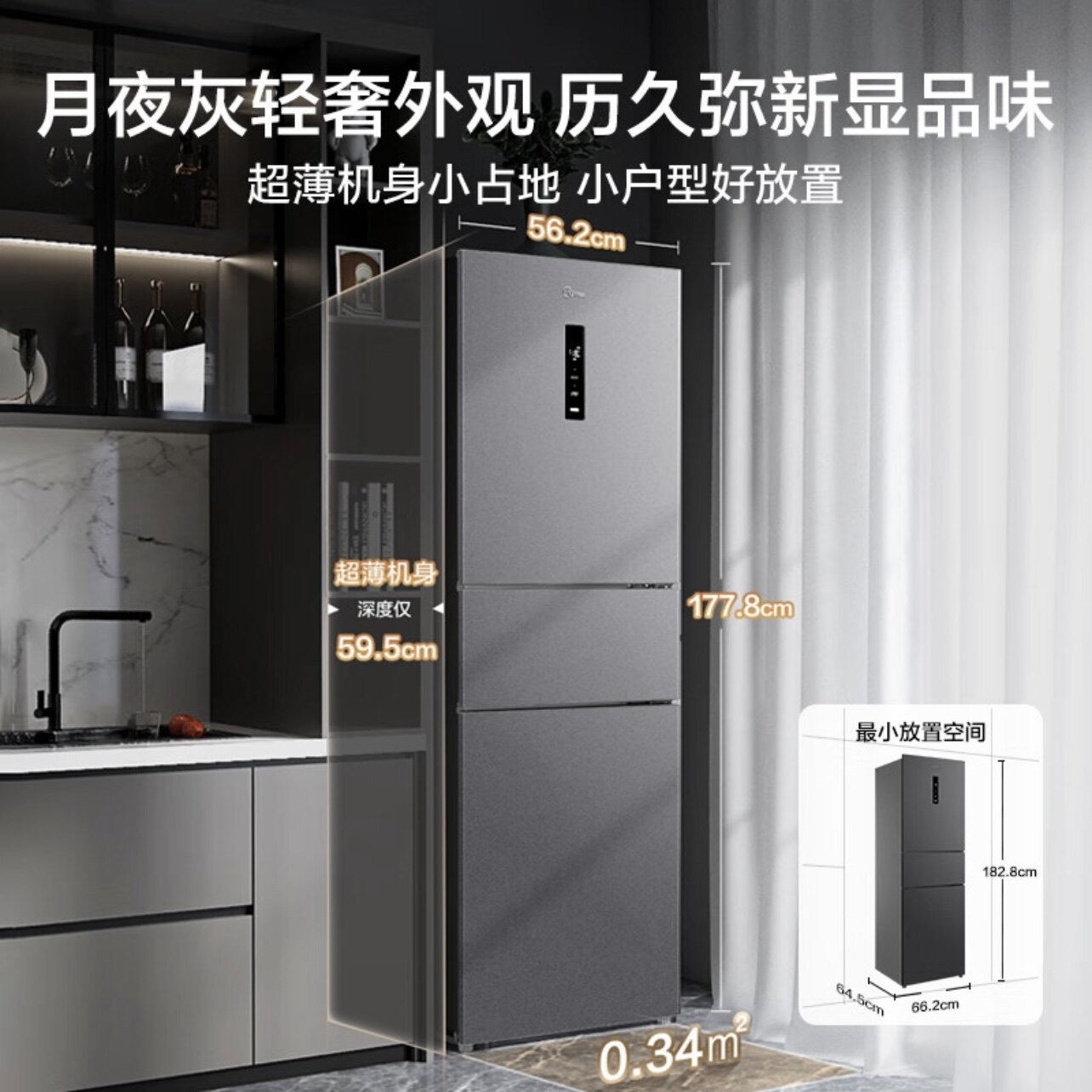📚 Midea/美的 MR-283WTPZE大三开门风冷无霜一级变频家用大冷冻冰箱