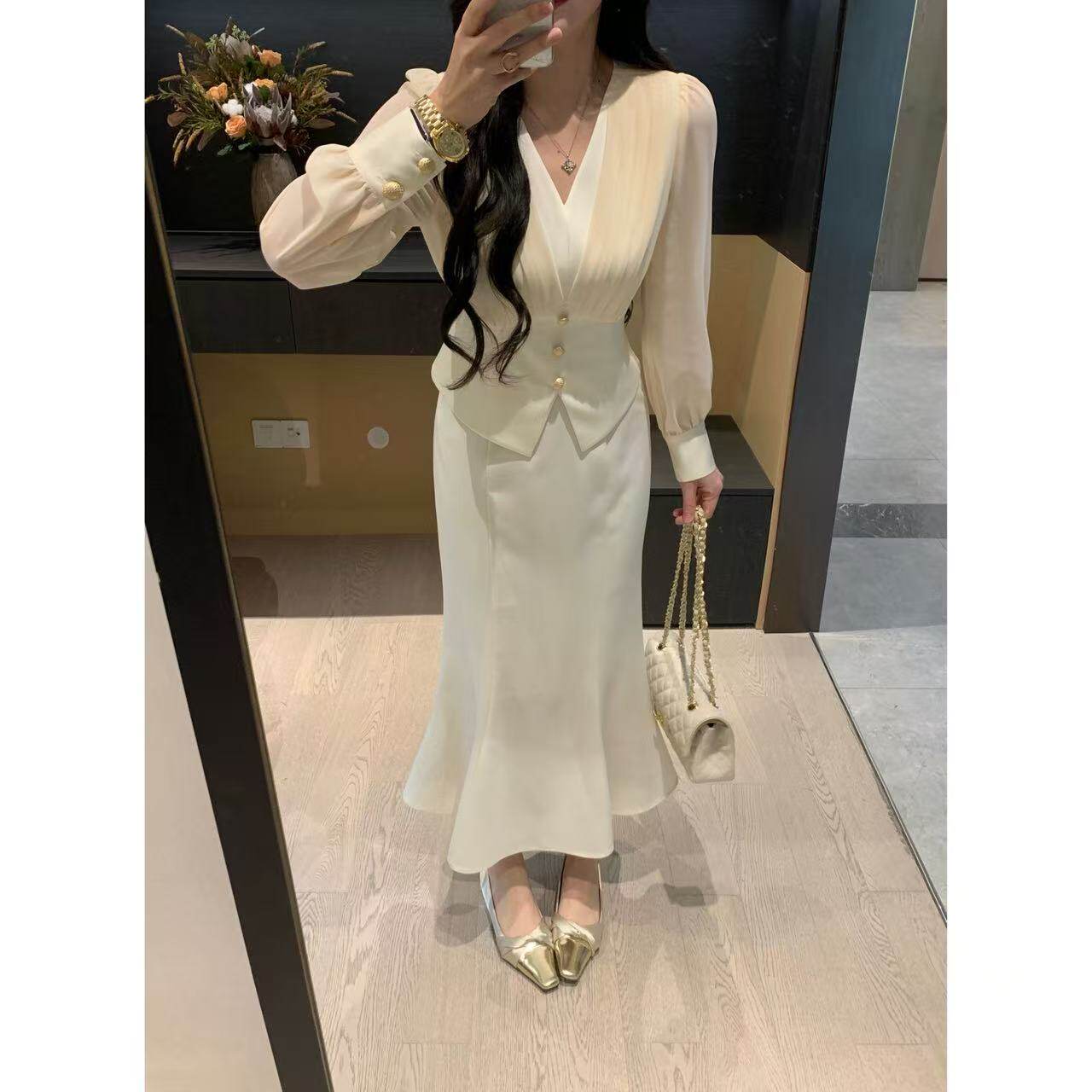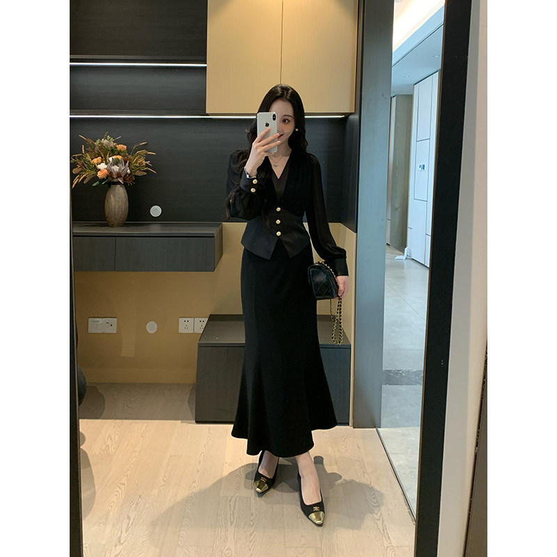 📚 XINYI【伯德小姐】秋季雪纺拼缎面衬衫女显瘦百搭气质内搭上衣
