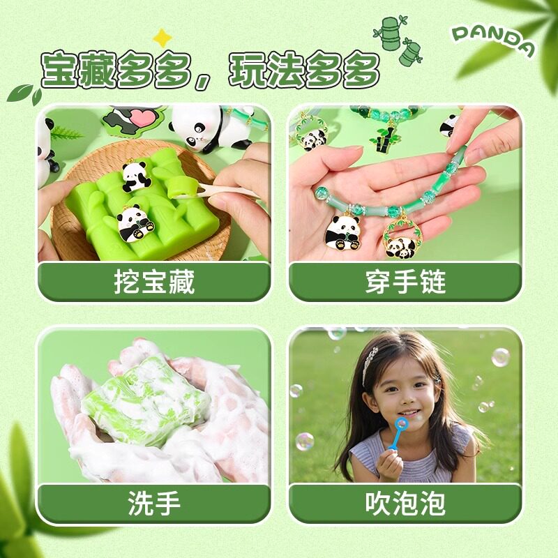 📚 熊猫竹子挖宝香皂肥皂盲盒考古挖掘宝石寻宝藏玩具儿童小女孩网红