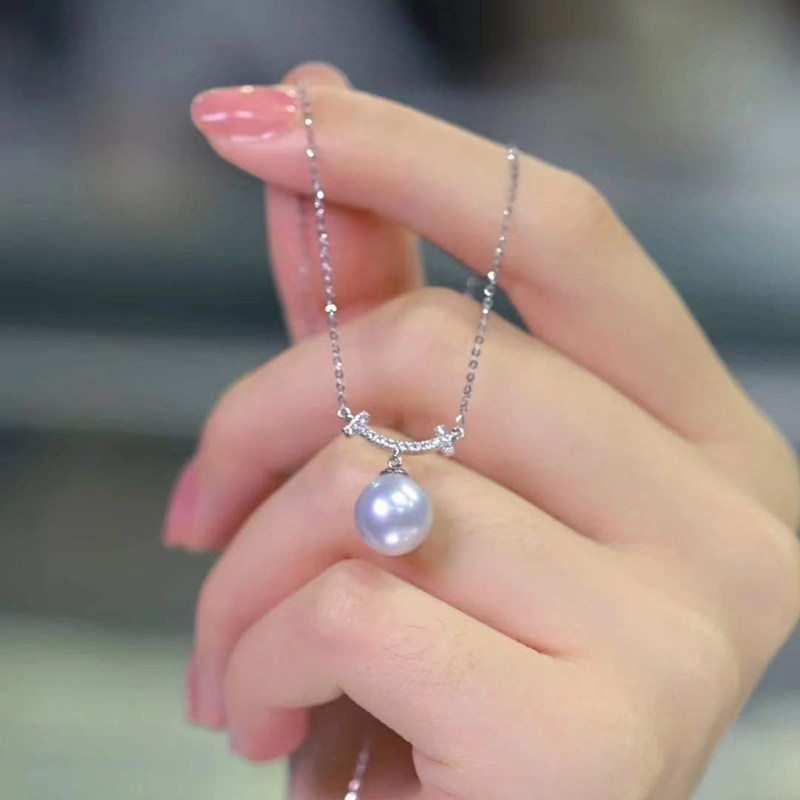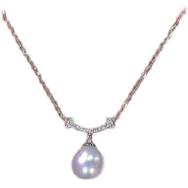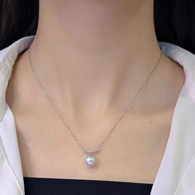 📚 DIY珍珠配件 S925纯银套链空托 时尚款吊坠带银链女 配9-11mm圆椭