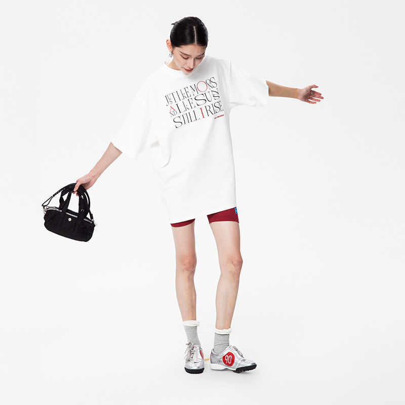 📚 ALL BEINGS25SS夏季新款字体矩阵白色大廓形宽松圆领T恤女