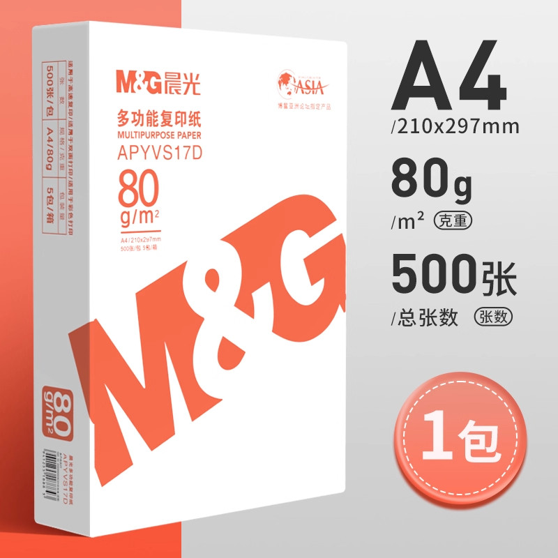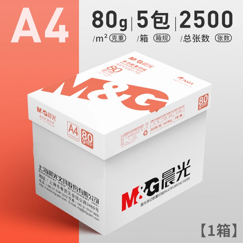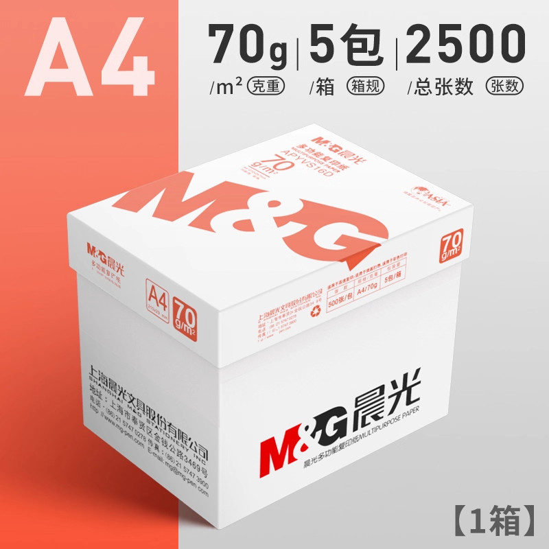 📚 晨光a4打印纸复印纸70g整箱5包双面打印A4纸2500张加厚80g打印机专用白纸草稿纸整箱批发学生办公用品包邮
