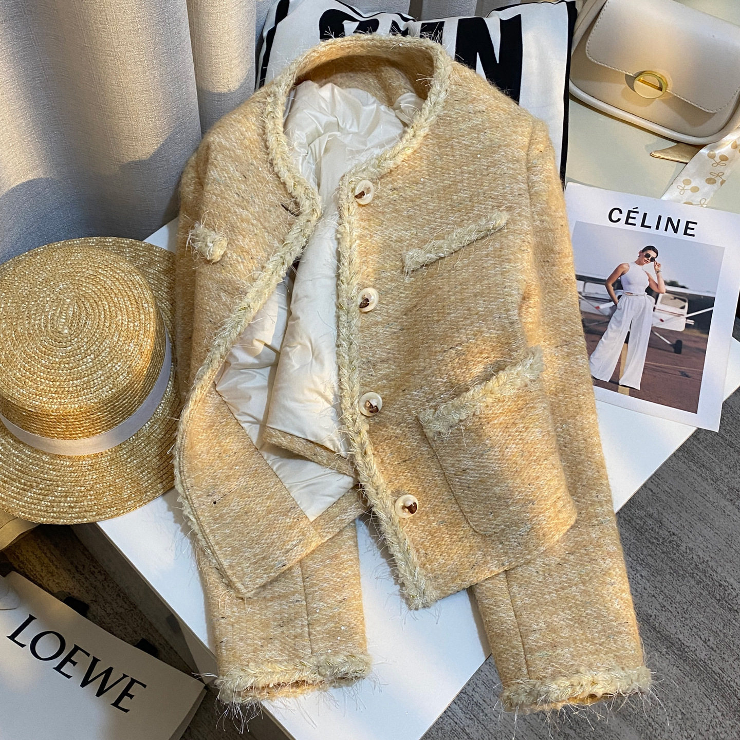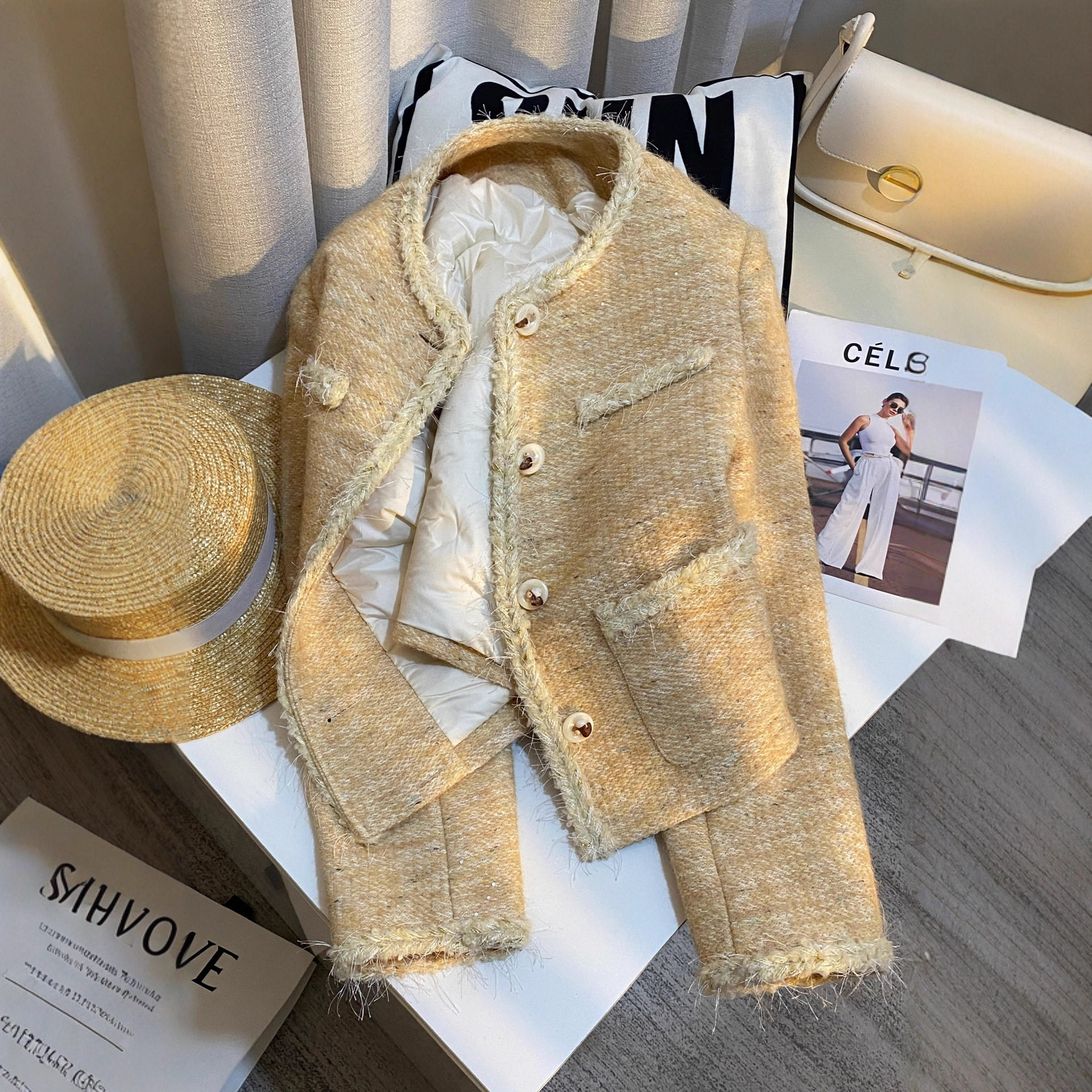 📚 今年流行特惠黄色轻奢重工羽内胆小香风短外套女2025冬季新款韩版