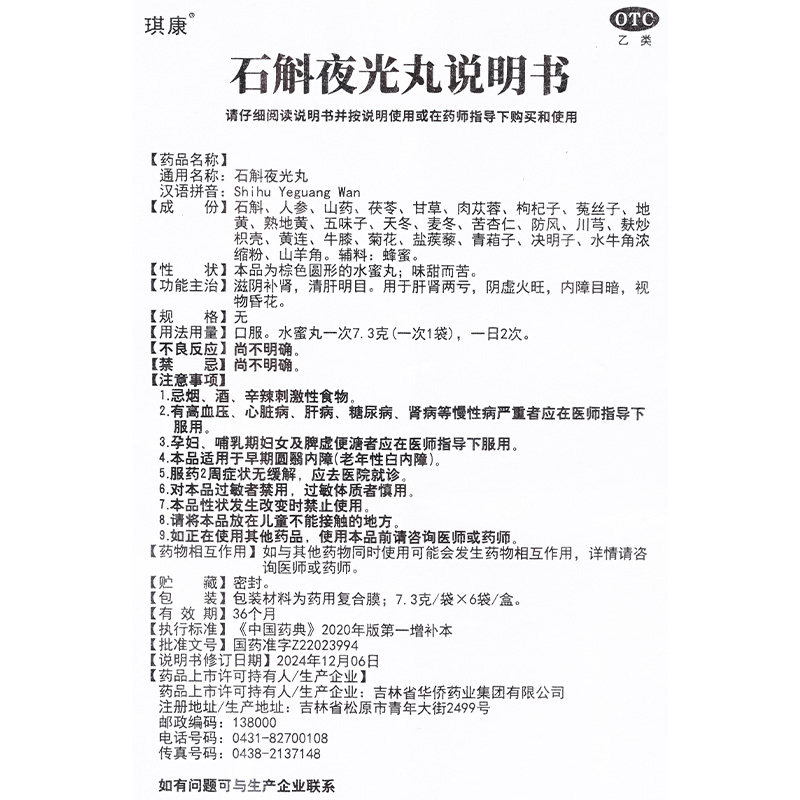 📚 琪康石斛夜光丸7.3g*6袋清肝明目滋阴补肾 用于内障目暗 视物昏花