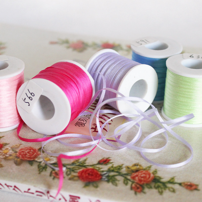 📚 2毫米真丝丝带绣diy手工材料装饰飘带彩色包装黑色红色细丝带定制