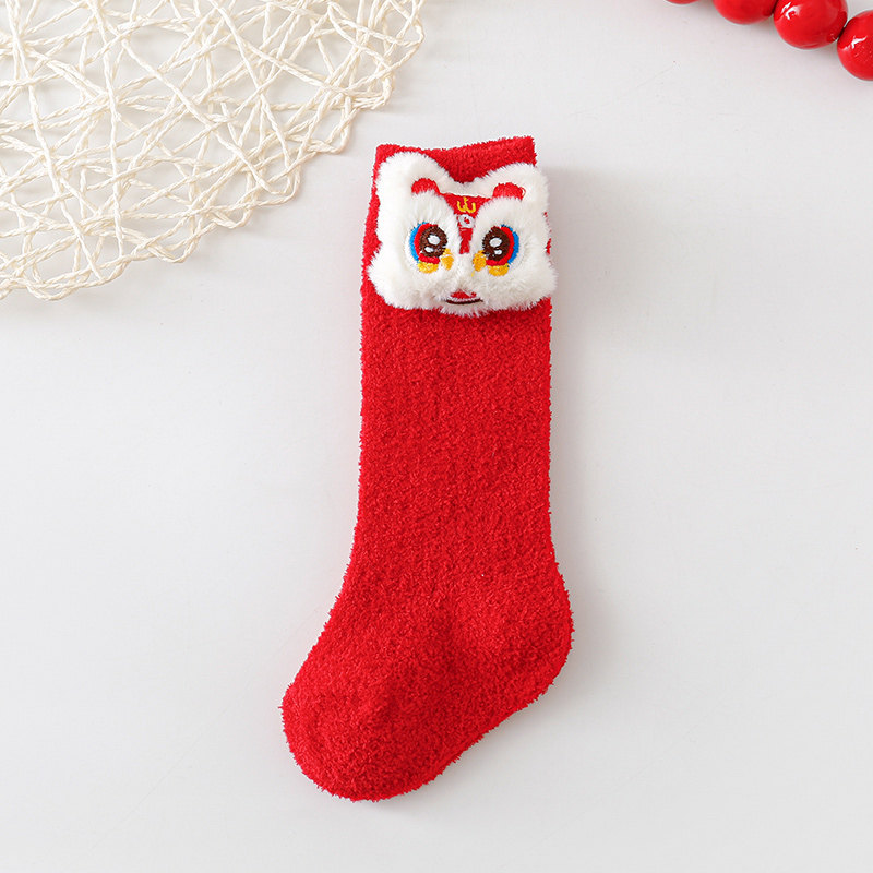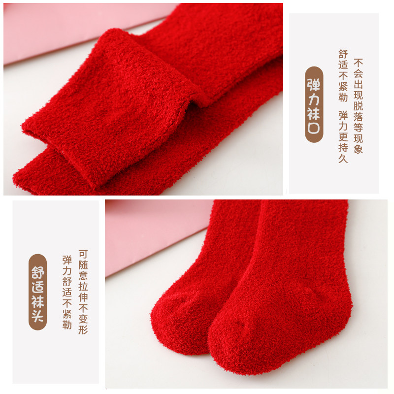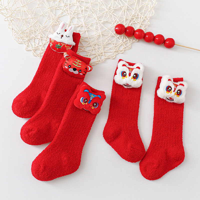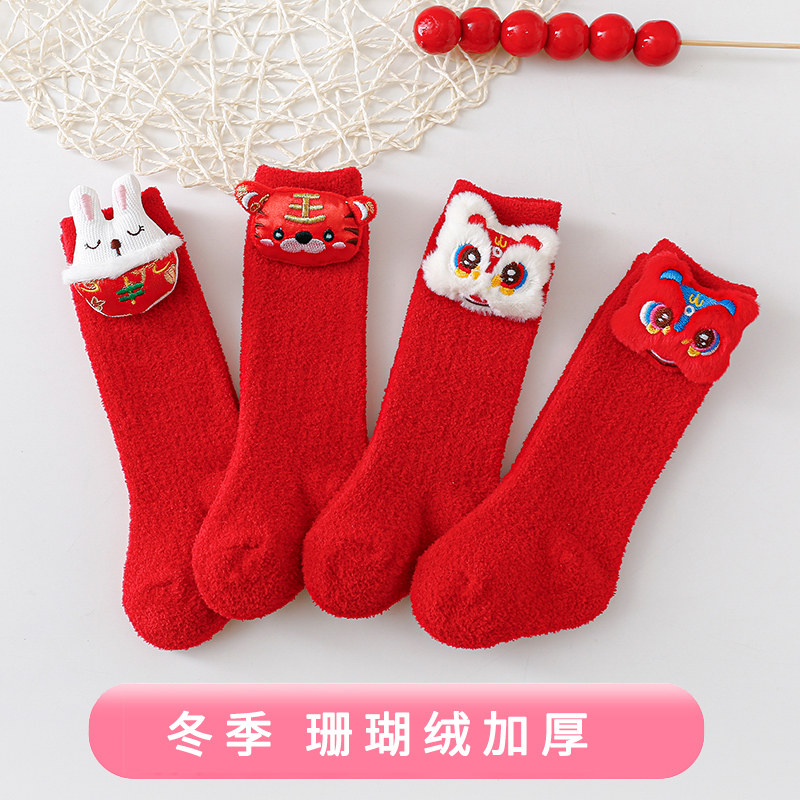 📚 秋冬季婴儿高筒长筒袜子宝宝卡通中筒袜大红色保暖男童女童新年袜