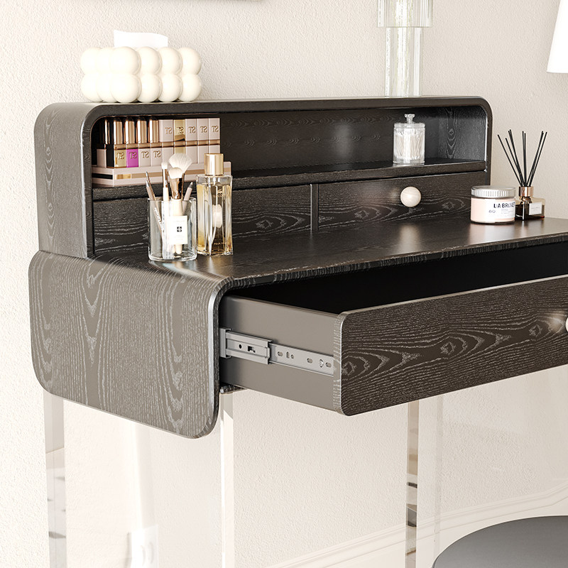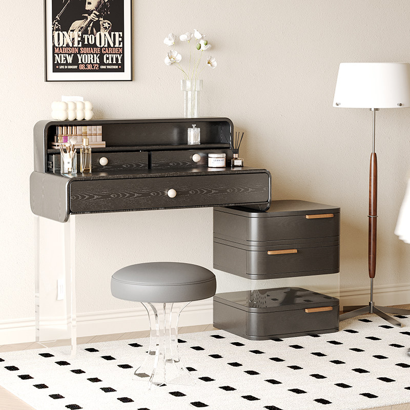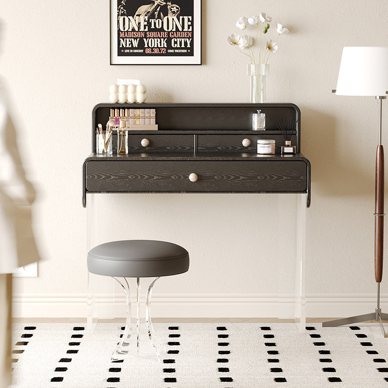 📚 早迟包豪斯实木梳妆台斗柜一体卧室小户型复古化妆桌收纳黑色书桌
