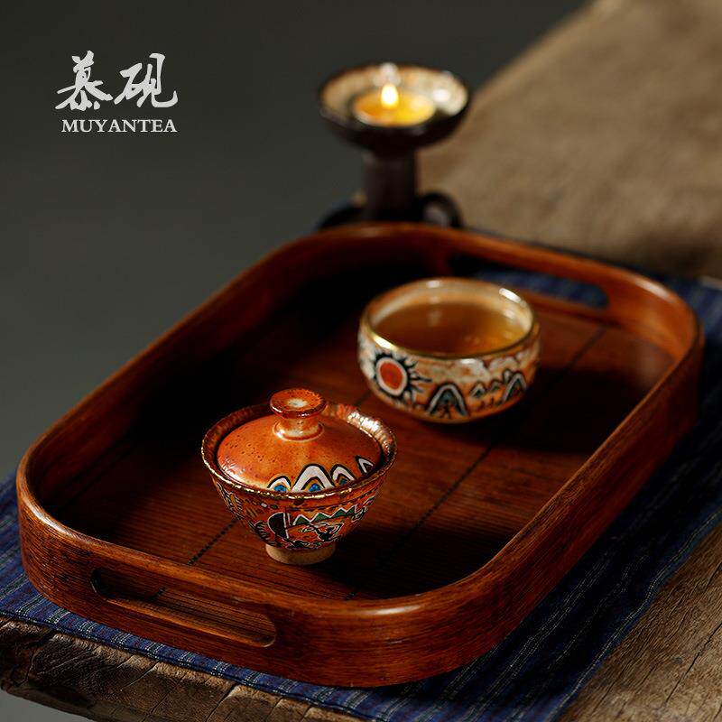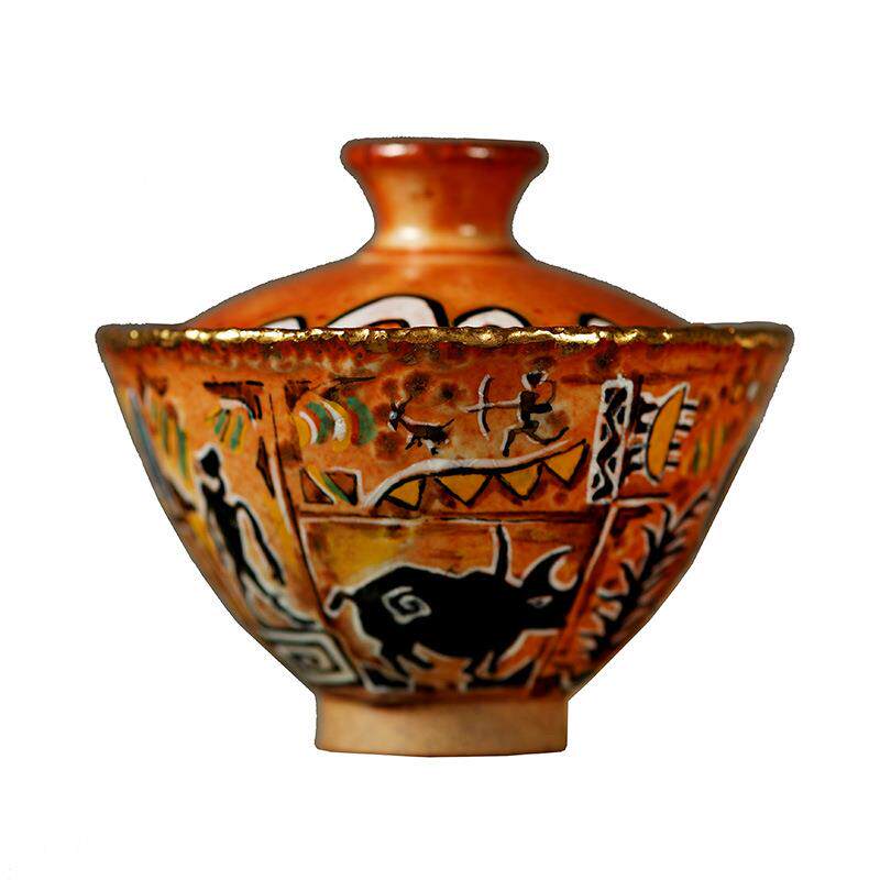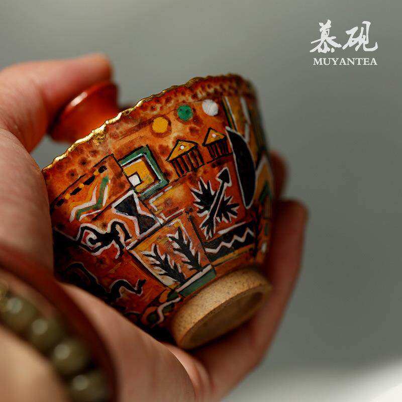 📚 慕砚手作柴烧盖碗手工市志野烧手绘茶碗茶杯陶瓷创意单个小盖杯